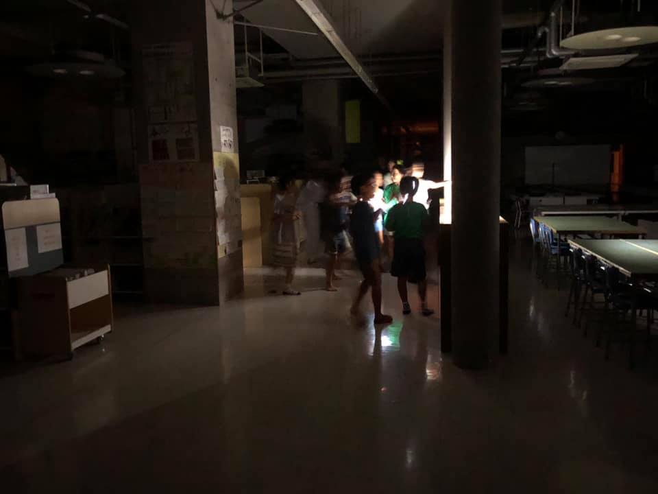 暗くなった後は、夜の校舎で肝試し。お化け役は希望した小学生+α。校舎内に悲鳴が響き渡りました。