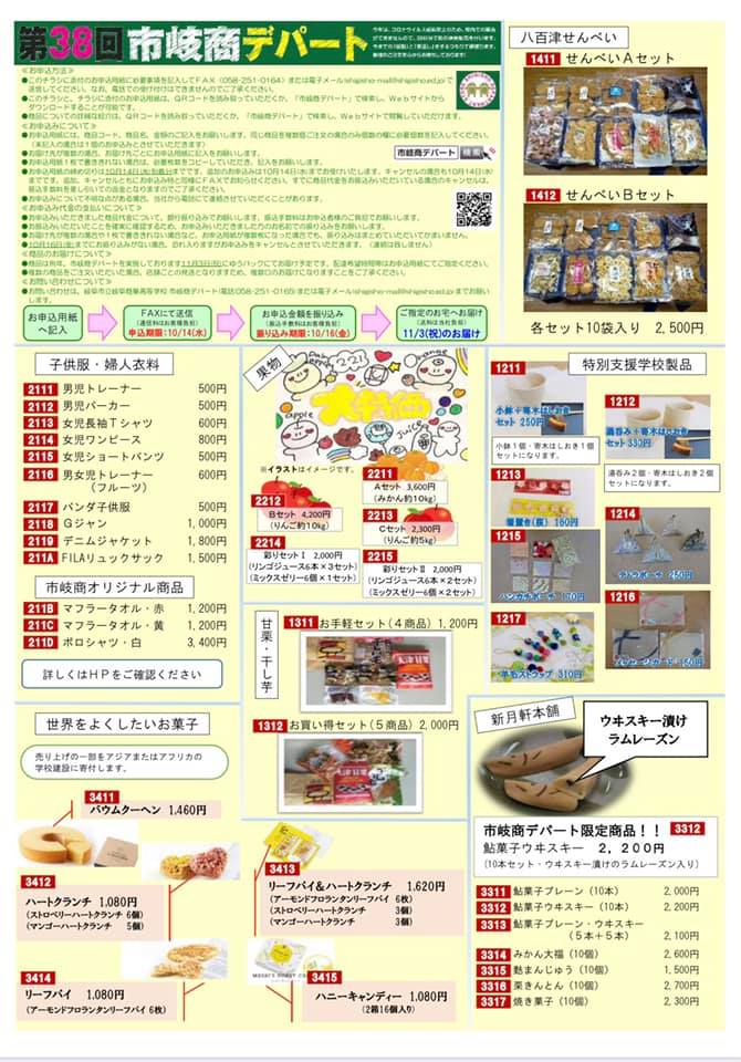 例年は11月3日に校内で開催ですが、今年は新型コロナウイルス感染防止のため、校内販売を取り止め、通信販売で実施です。商品の注文は10月1日から始まっていて明日14日まで。FAXまたはEメールで受け付け。