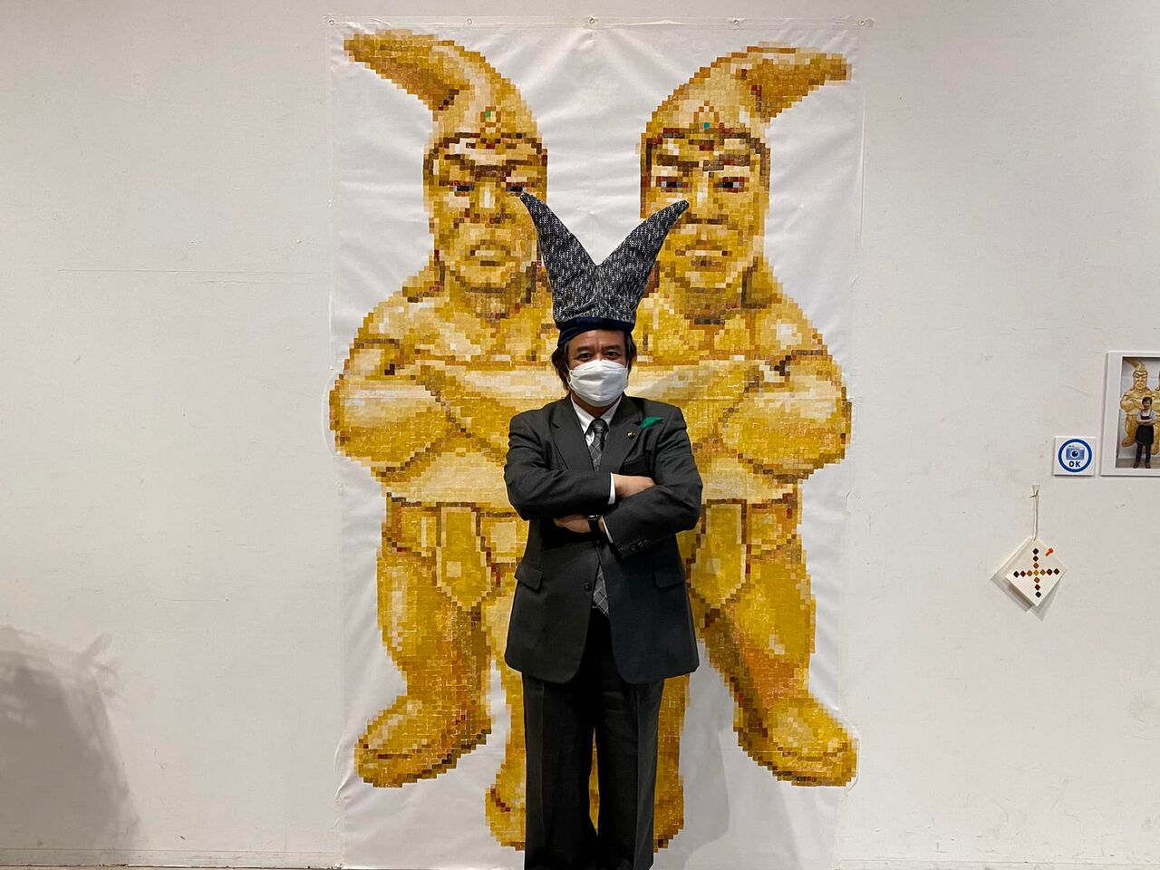 敏史さんは、発泡スチロール積み重ねた立体造形、木版画などで、芸術に疎い私でも満足する作品ばかりです。アンゲリカさんは、人物の陶芸などですが、作品名を表示せず、ノートに思いついた作品名を書いてもらう趣向。開いてみると、人それぞれの感じ方に納得するやら可笑しいやら…。