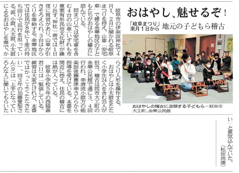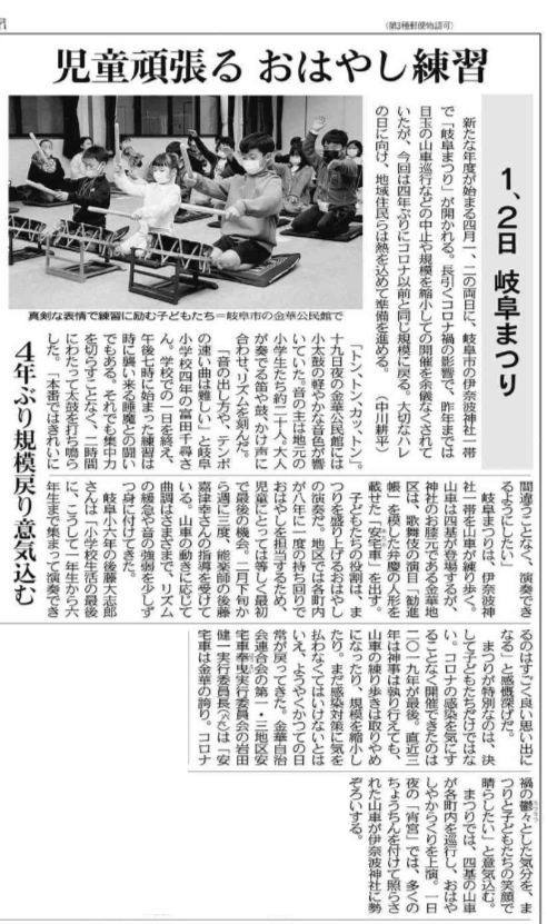 中日新聞と岐阜新聞の記者を取材に案内しましたが、子ども達が頑張っている様子を記事にしてくれました。