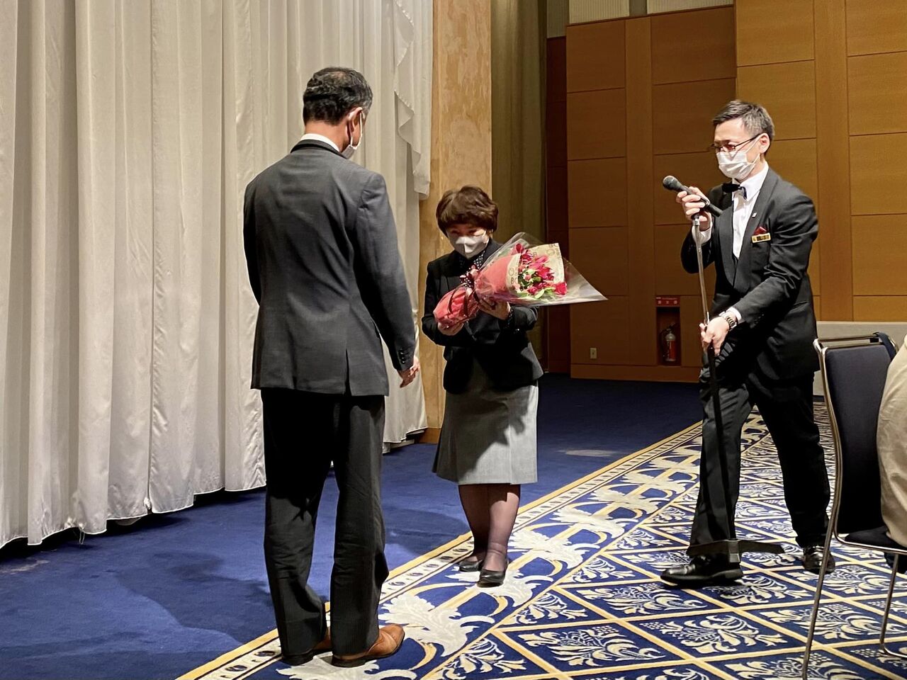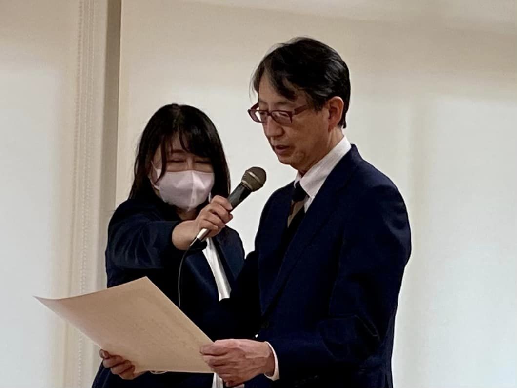 定年退職となる管理職の送別会の意味合いも含まれています。また、今期で勇退される松岡文夫市議の送別でもあります。それぞれに花束が手渡されました。