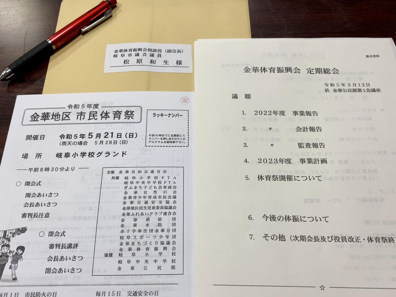 事業報告は、メインといえる金華地区市民体育祭がコロナ禍で中止でしたが、新年度事業計画では、4年ぶり実施の方向(半日開催に短縮)で準備を始めることになりました。日程は、昔から5月の第3日曜日に決まっています。