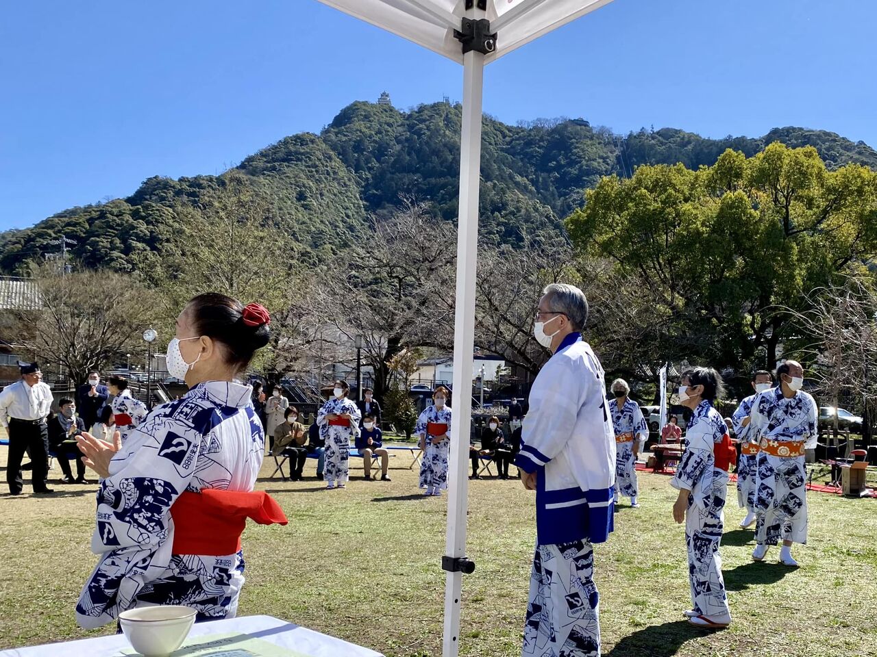 お団子を手に、皆さんの笑顔も満開でした…。