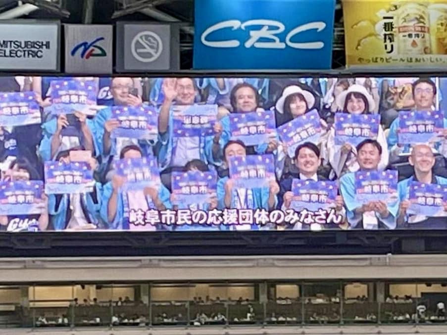 名古屋都市圏から観光客や移住者を呼び込むため、シティプロモーションの一環として実施。球場入口に岐阜市ののぼり旗を並べたり、市民応援団がボードを掲げたり、バックスクリーンのビジョンでCMを流したり…。また、先着2万人にPRうちわを配布し、掲載してあるQRコードからアンケートに答えると、抽選で鵜飼観覧船ペア乗船券、長良川花火大会有料観覧席ペアチケット、長良川温泉ペア宿泊券が当たります。
