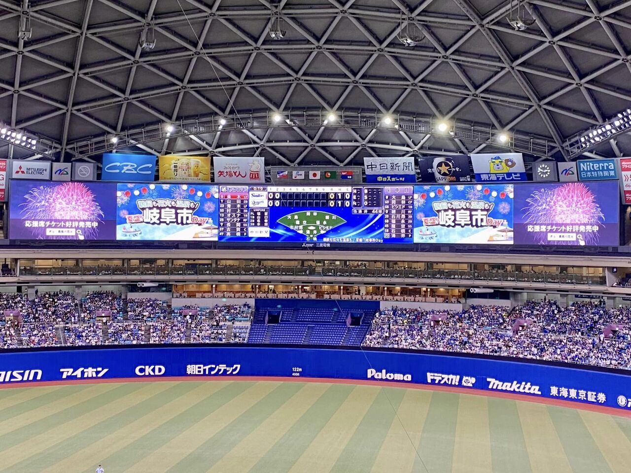 バンデリンドームのプロ野球「中日-ヤクルト戦」(6月25日)が、『鵜飼も花火も温泉も!夏盛!!岐阜市Day』として開催されました。