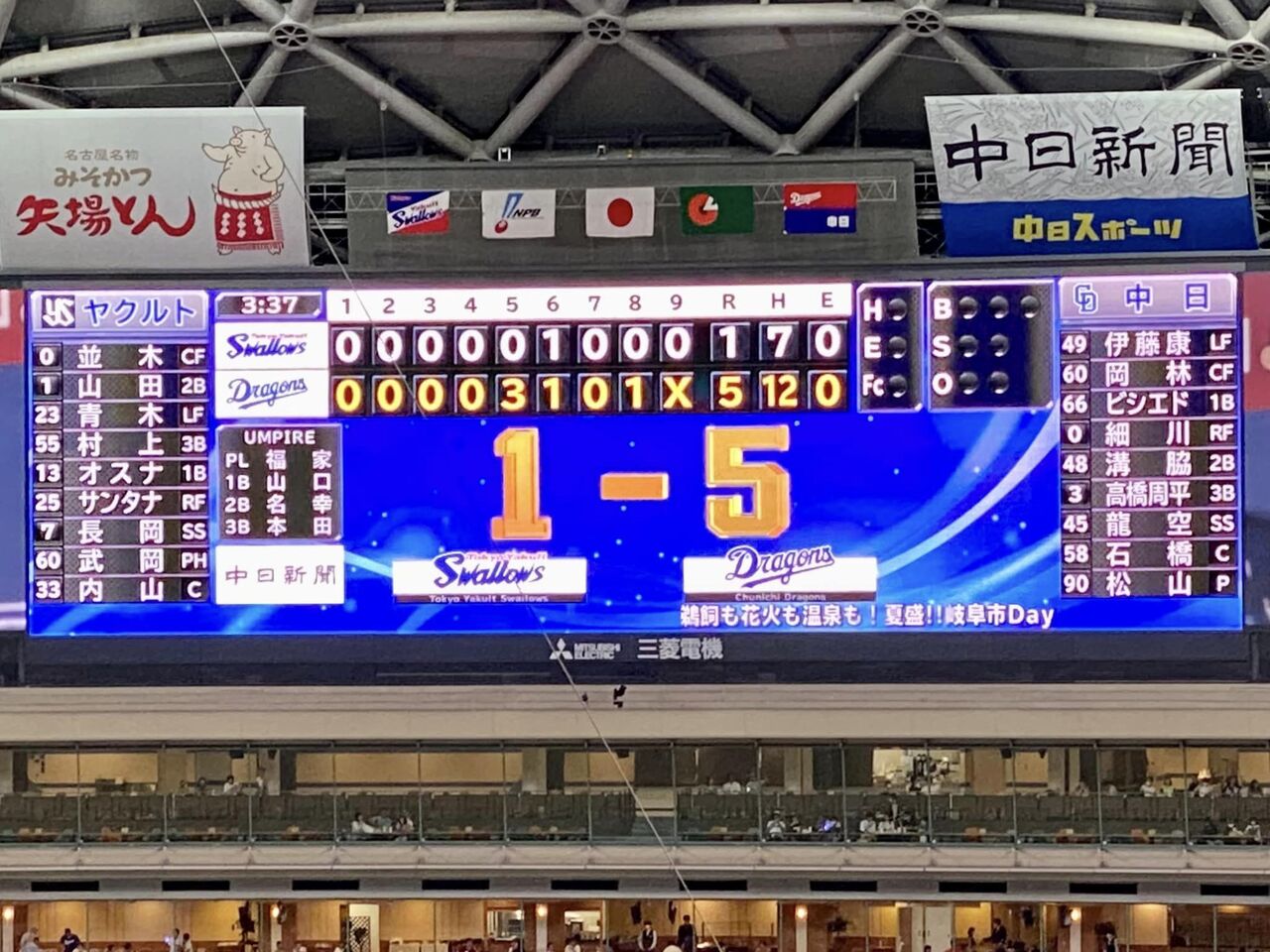 ※尚、試合は、5対1で我等が中日ドラゴンズの快勝でした。