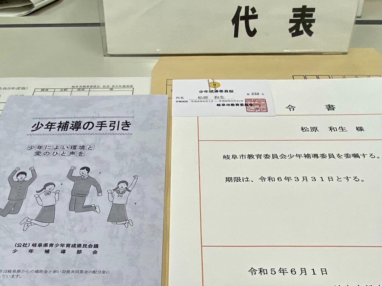 改めて少年補導委員の委嘱状、補導委員証等を受領。