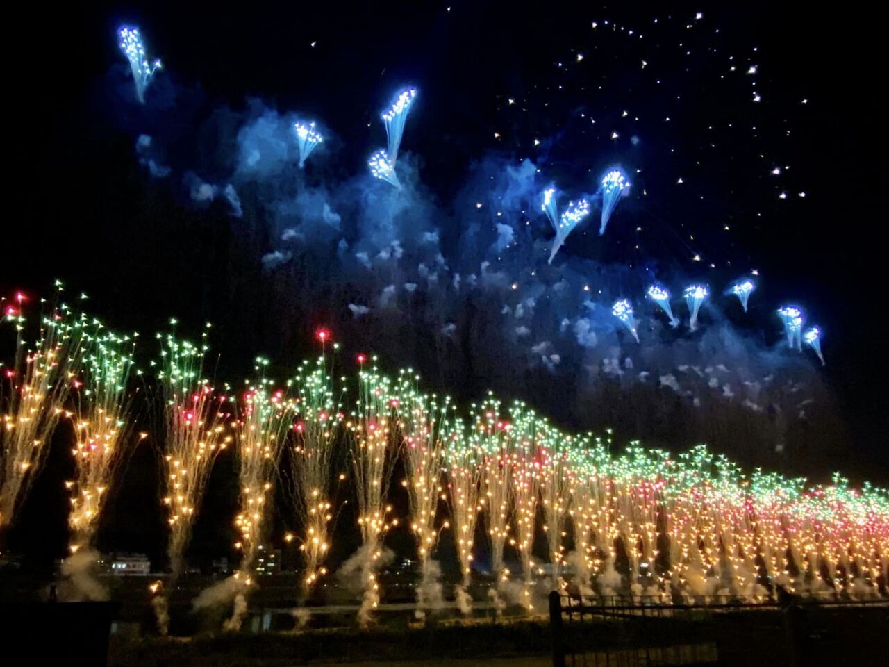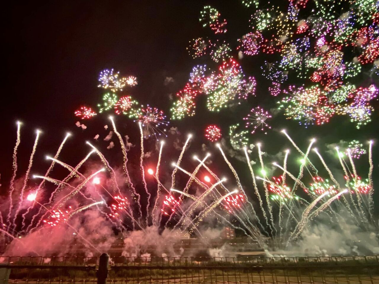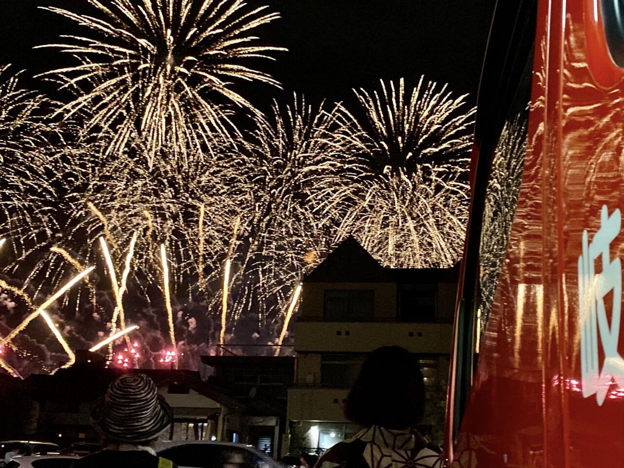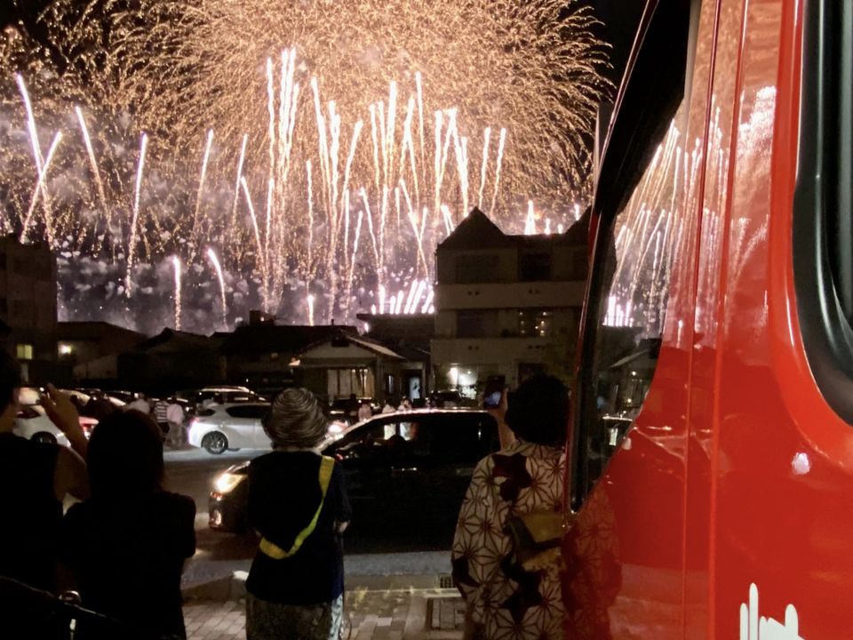 分団の前は4車線道路で、見上げる角度に遮るものが無く、付近では花火客が並んで見上げています。終了後は、駅方面の帰路となり、復路のバス停(往路と違う)の場所を何十回となく答えます。たくさんの人がトイレを借りに立ち寄ります。
