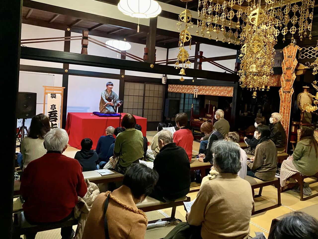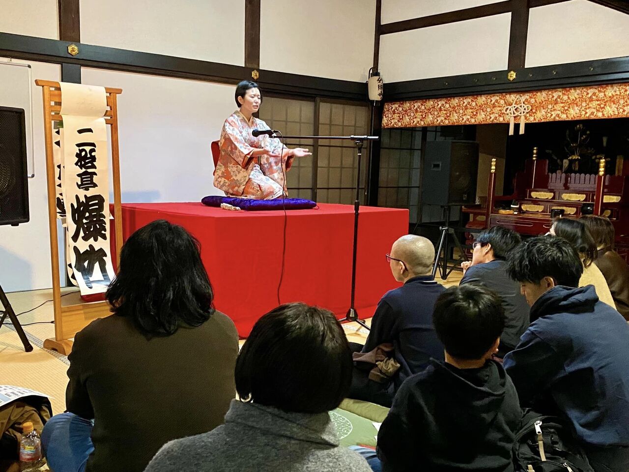 学生まちなか寄席「井の口寄席」が、妙照寺本堂で開催されました。