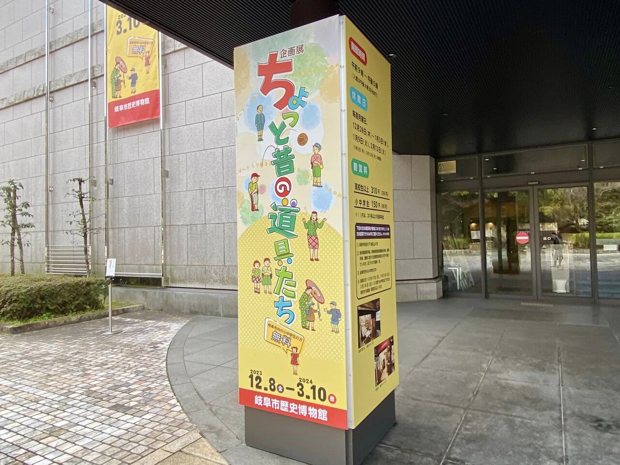 今回のゴールは「岐阜市歴史博物館」の横。企画展「ちょっと昔の道具たち」を観覧します。※市内在住の70歳以上は入場無料。