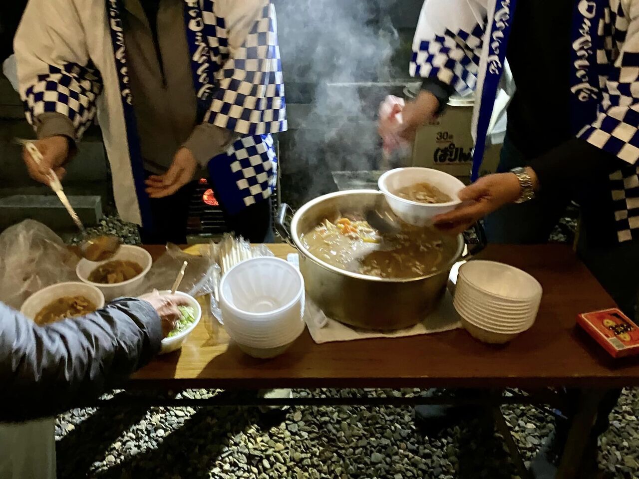 木戸銭は500円。仲入りには手作り豚汁が振る舞われます。