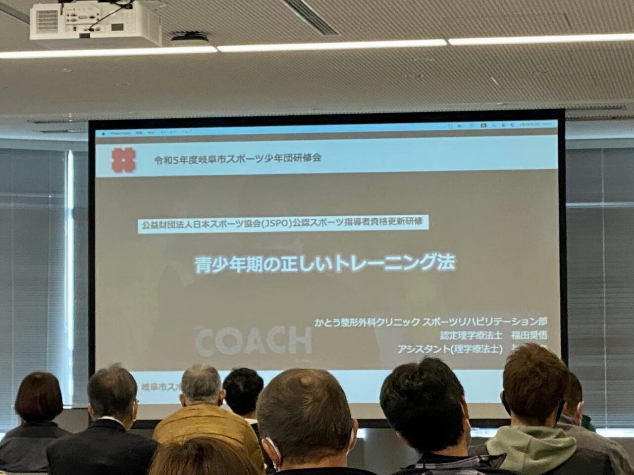 令和5年度岐阜市スポーツ少年団研修会が、市役所6階大会議室で開催。各地区各種目の指導者が集まりました。公益財団法人日本スポーツ協会(JSPO)公認スポーツ指導者資格更新研修でもあります。