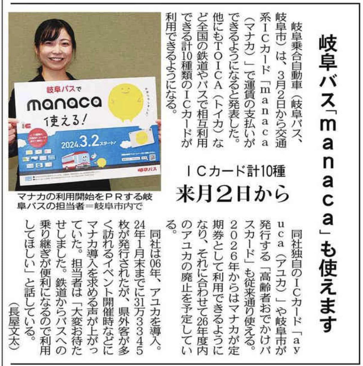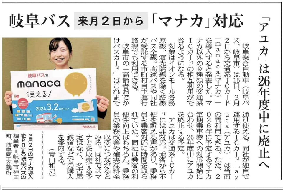 岐阜バスが3月2日からmanacaに対応