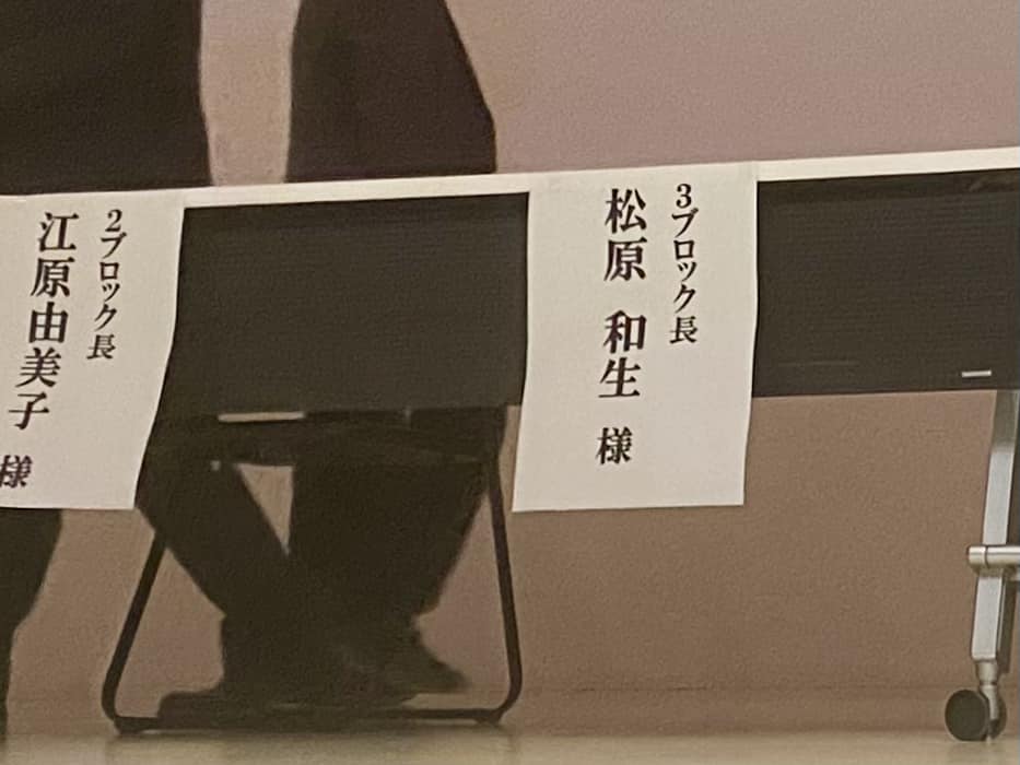 後半の全体会では、市社会青少年教育課長や各ブロック会長が壇上に並びます。私も第3ブロック会長として最後に閉会挨拶を担当しました。