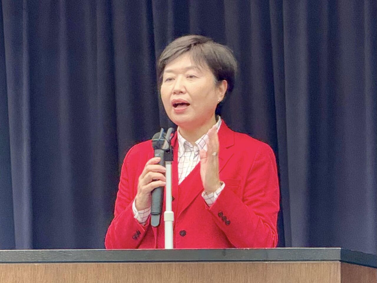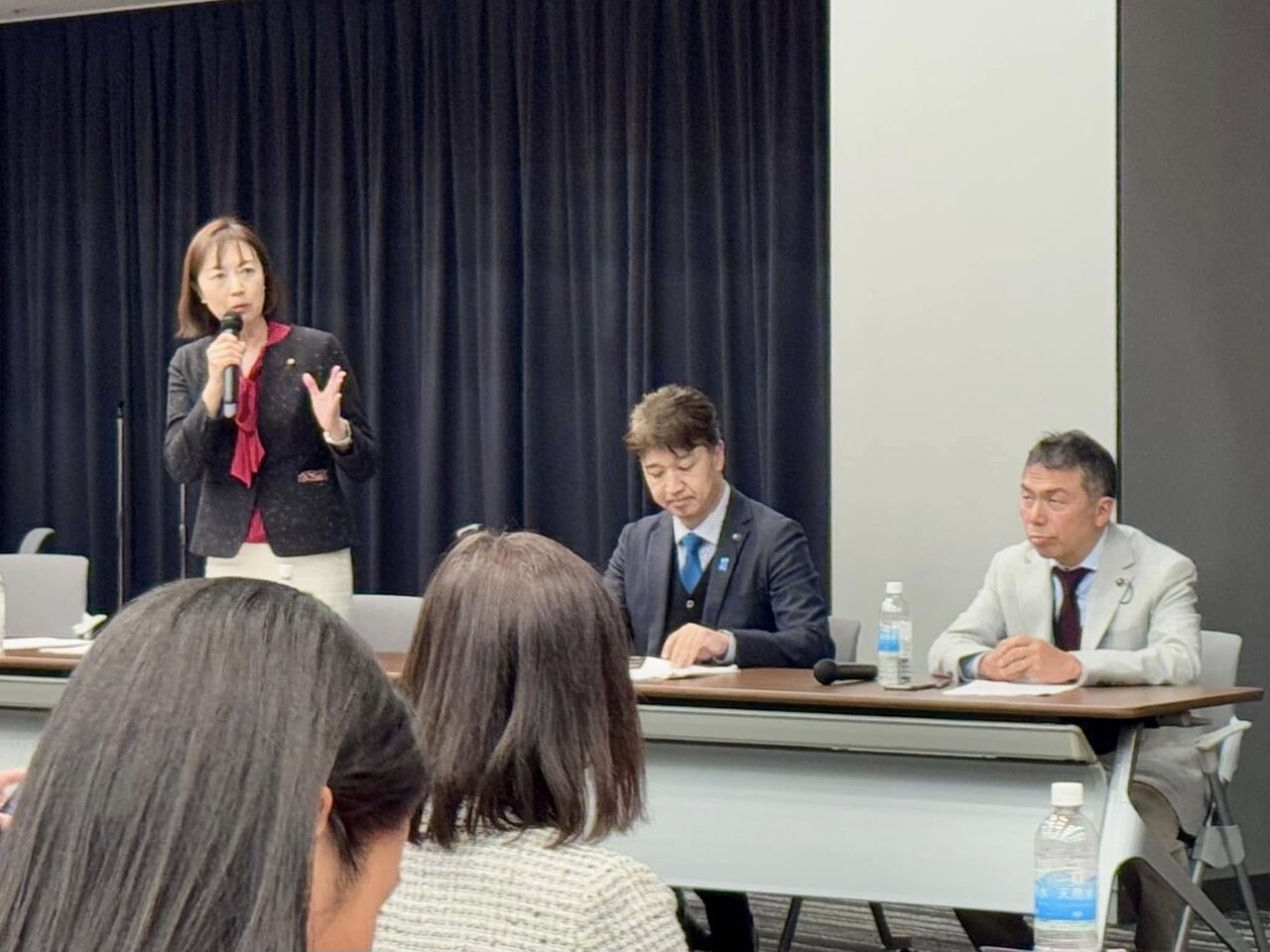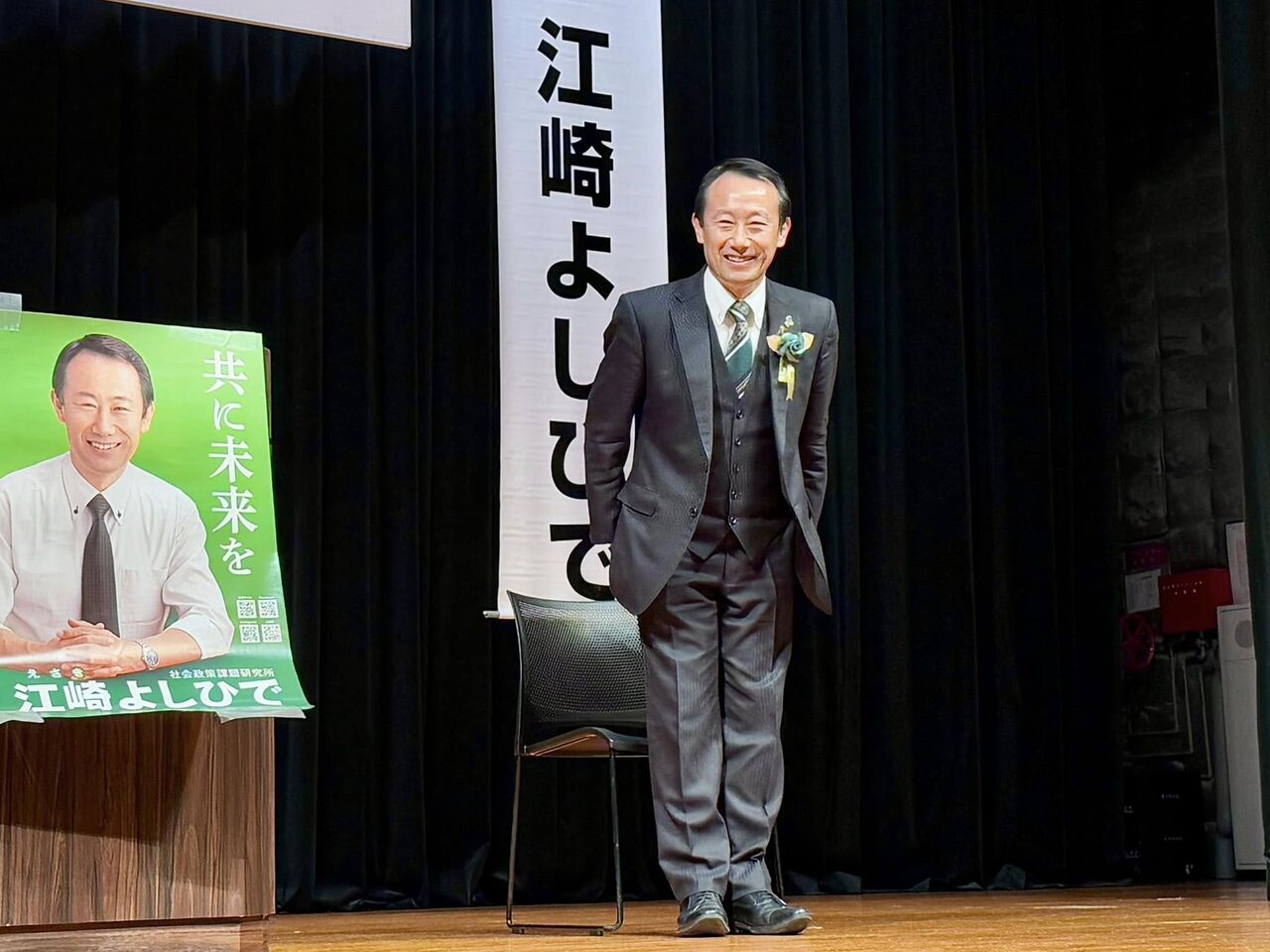 江崎候補の演説の途中、会場に赤ちゃんの大きな泣き声。「赤ちゃんは泣くのが仕事ですから…」という温かい声掛けに、江崎候補の人柄を見た気がしました。