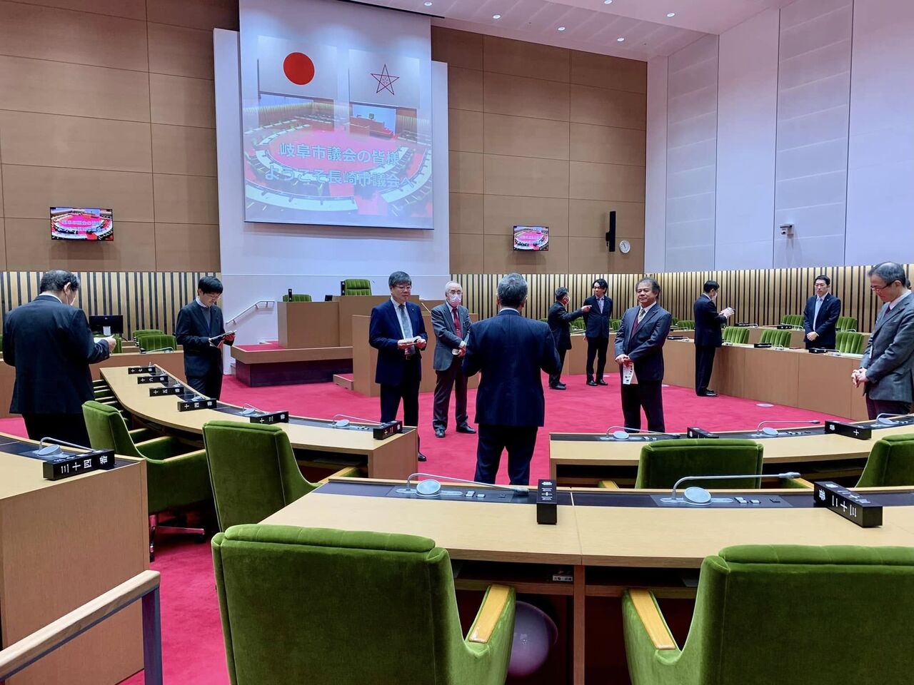 各党県連代表、連合岐阜会長、衆議院議員3人が挨拶。司会、ガンバロウの発声などは県議会議員です。
