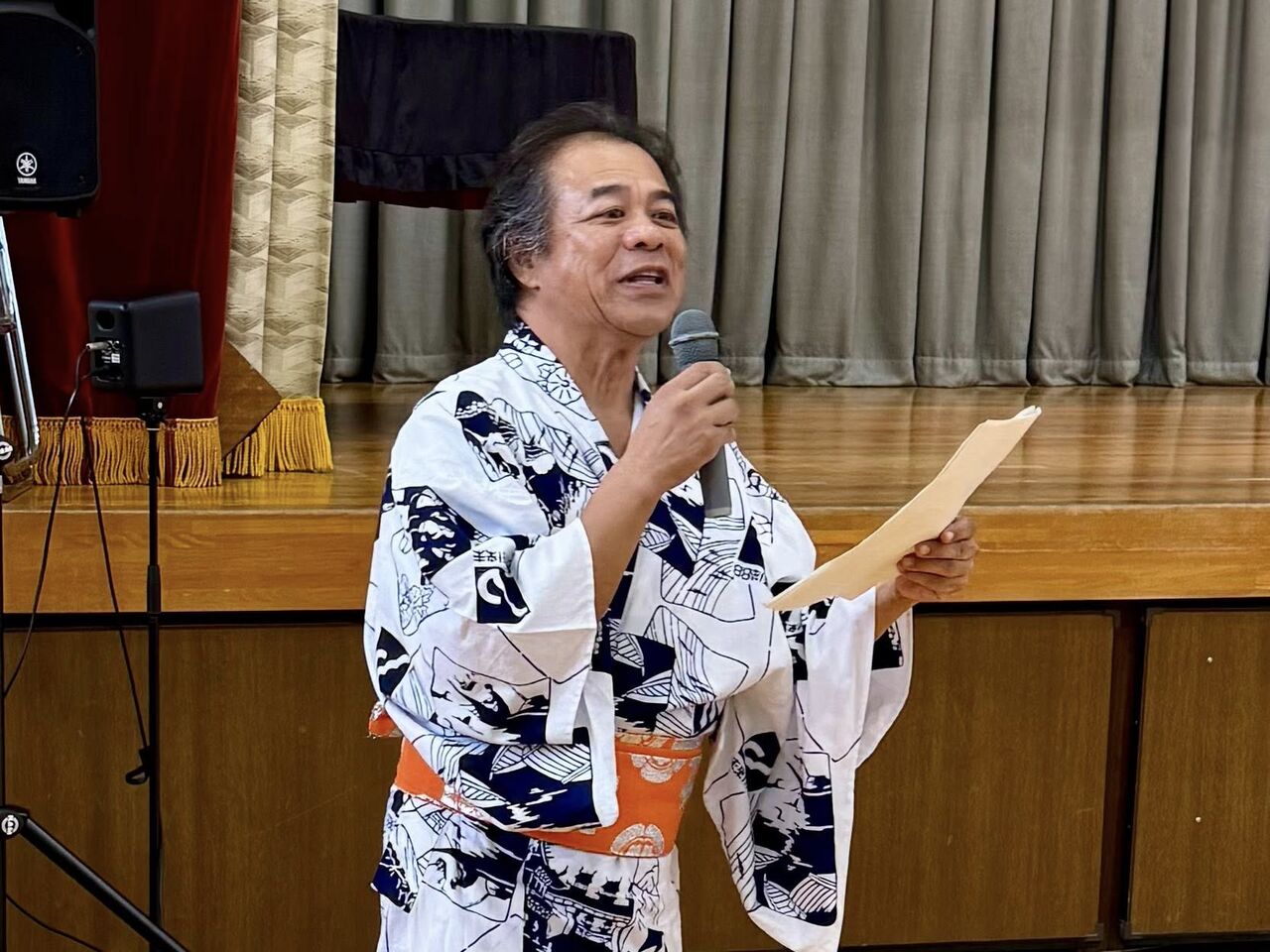 舞台発表は、当番の金華自治会連合会第3ブロック長として司会進行。