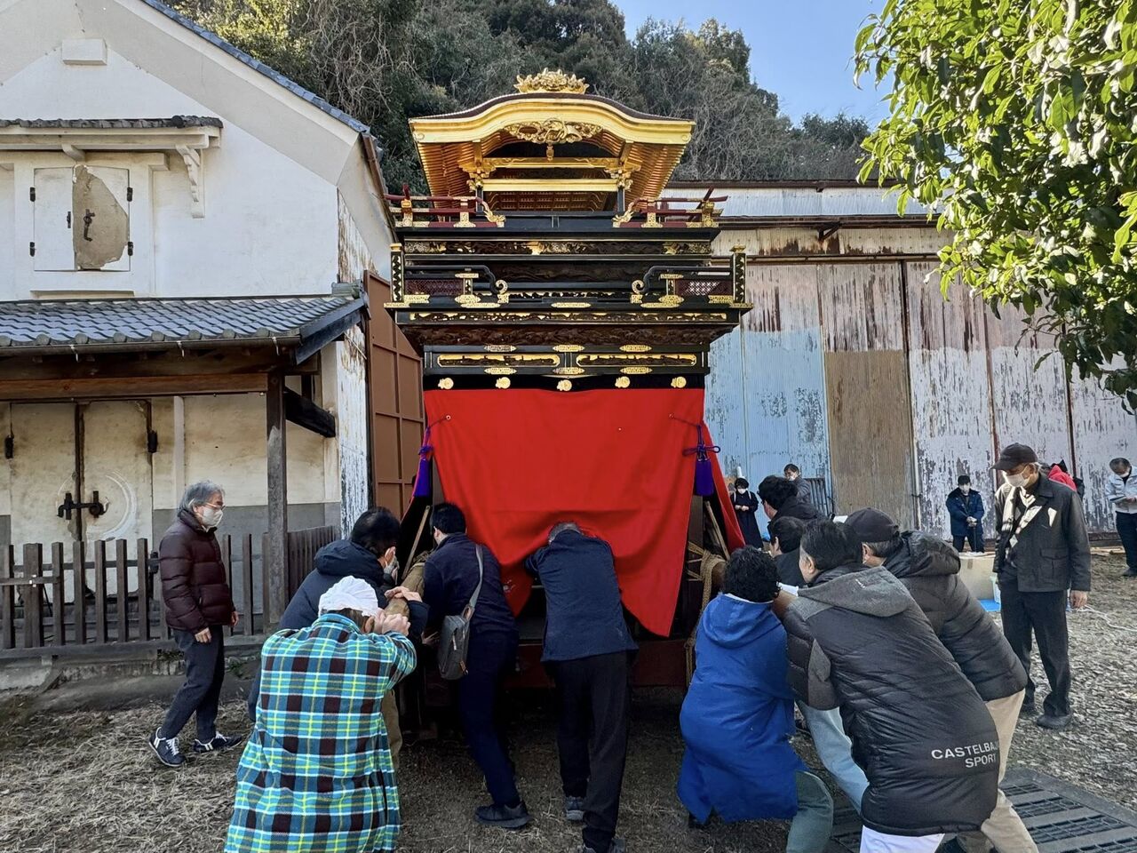 金華第13・14地区安宅車奉曳実行委員会が、山車の事前点検を実施。前年度の実行委員長としてお邪魔しました。