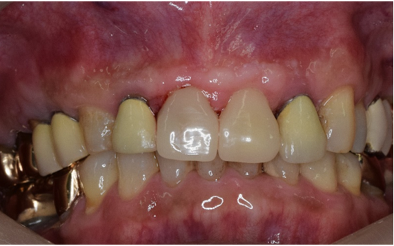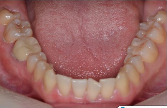 治療法:下顎の右側、第一大臼歯の銀歯を取り除き、セラミックの歯を被せる厚みを確保するため、少し土台の歯を削りました。保険では即日修復は認められていないため、後日セレックで設計し削り出した歯を装着しました。