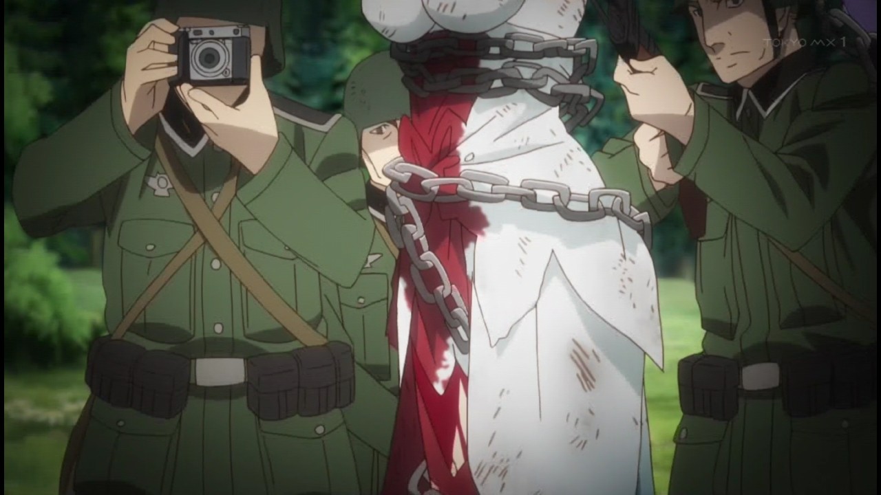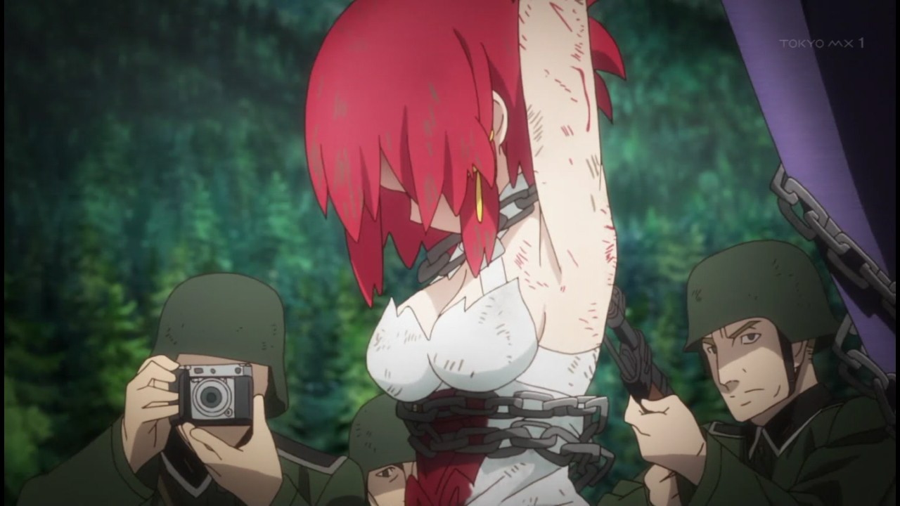 アニメ『終末のイゼッタ』9話で女の子が鎖に縛られリョナってるエロシーンで薄い本的展開!
