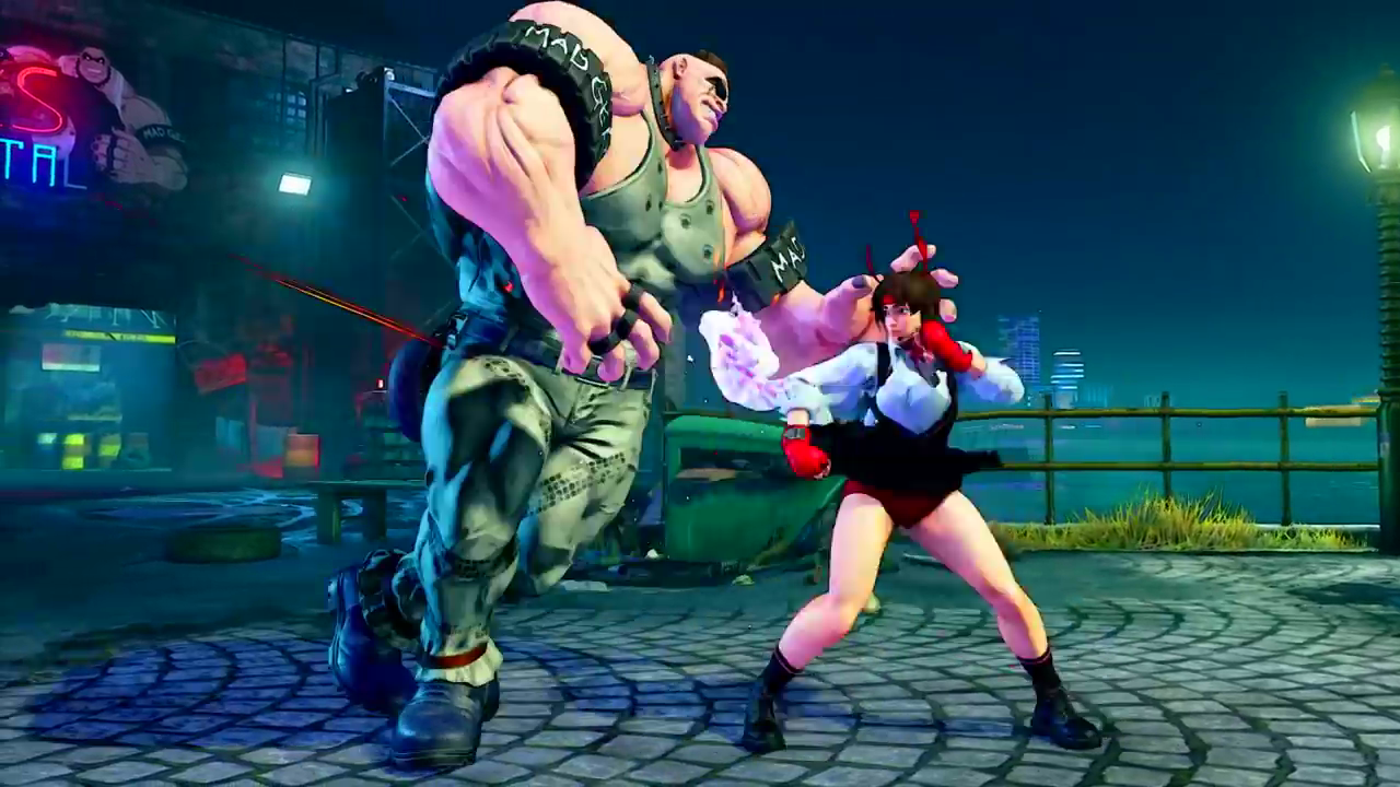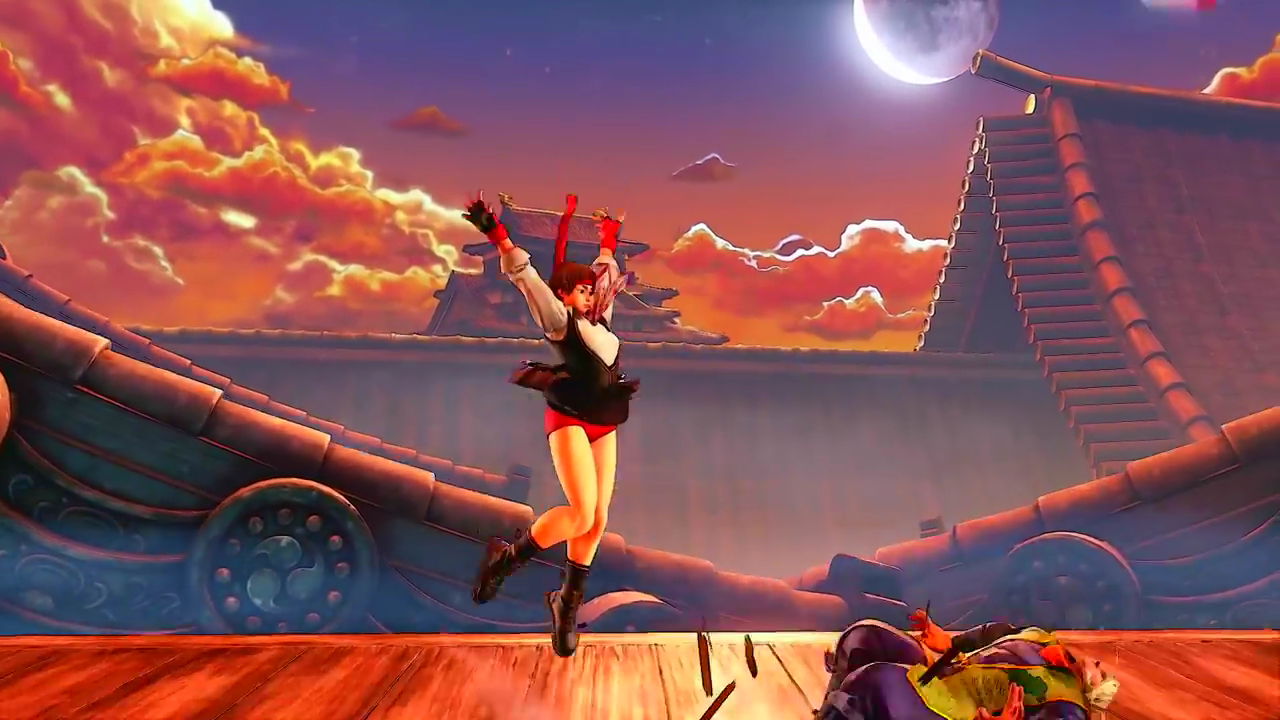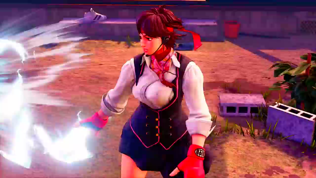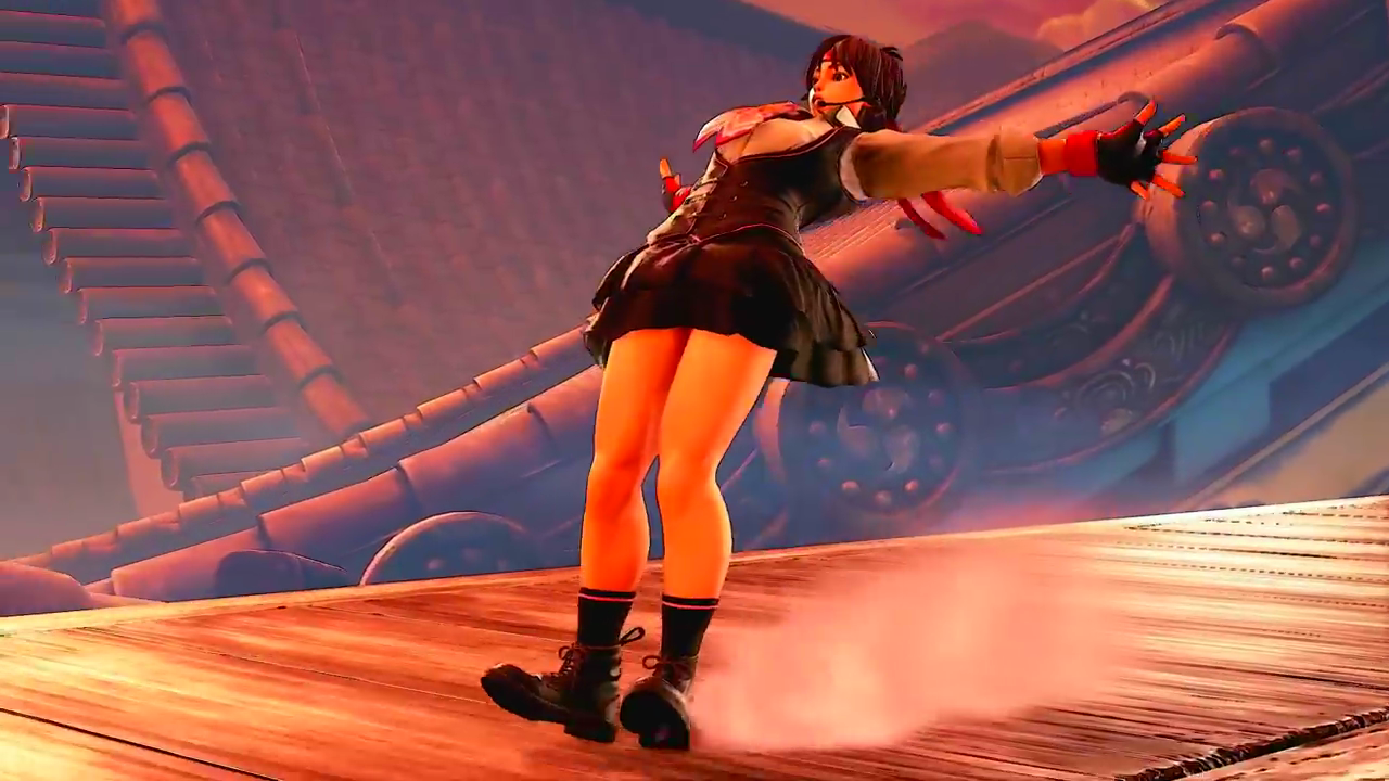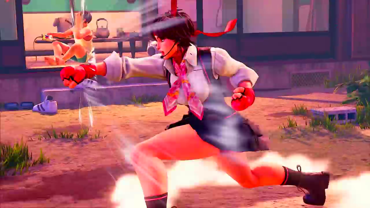 『ストリートファイター5』エロい制服姿でスカートの中のブルマが見えまくるエロいさくら参戦