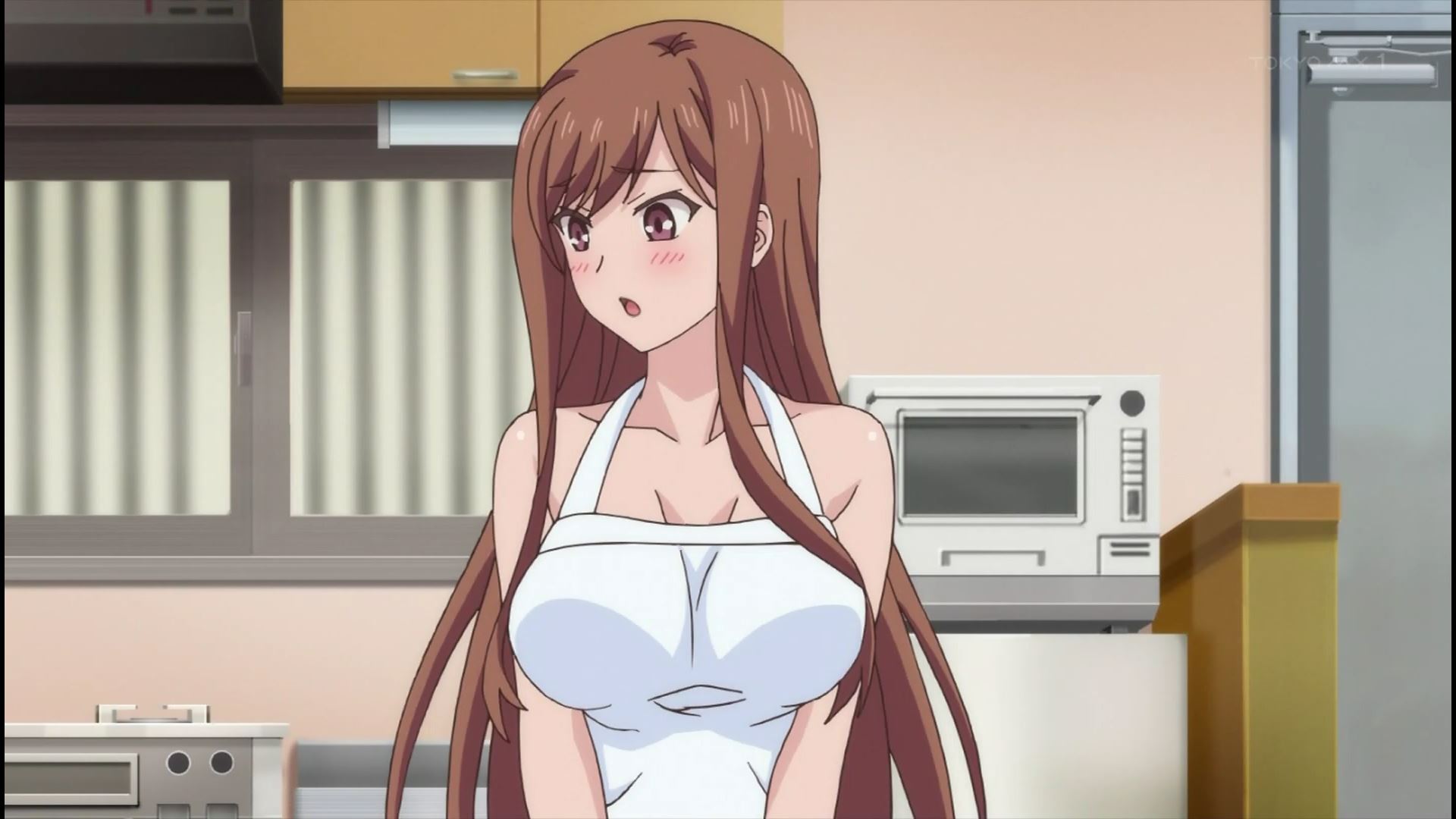 アニメ『おーばーふろぉ』7話で妹のエロい裸エプロンでそのままセックスするシーン!