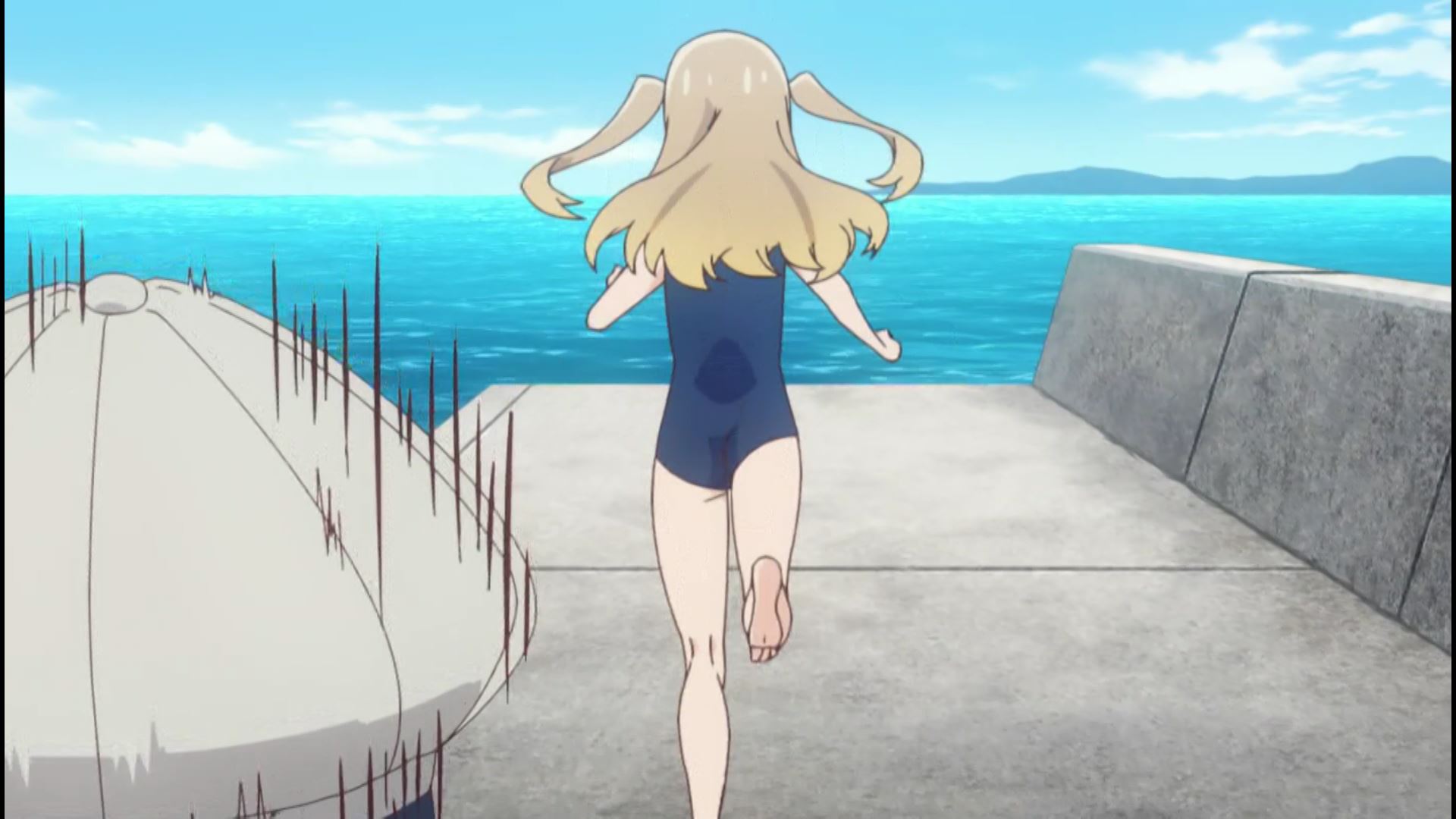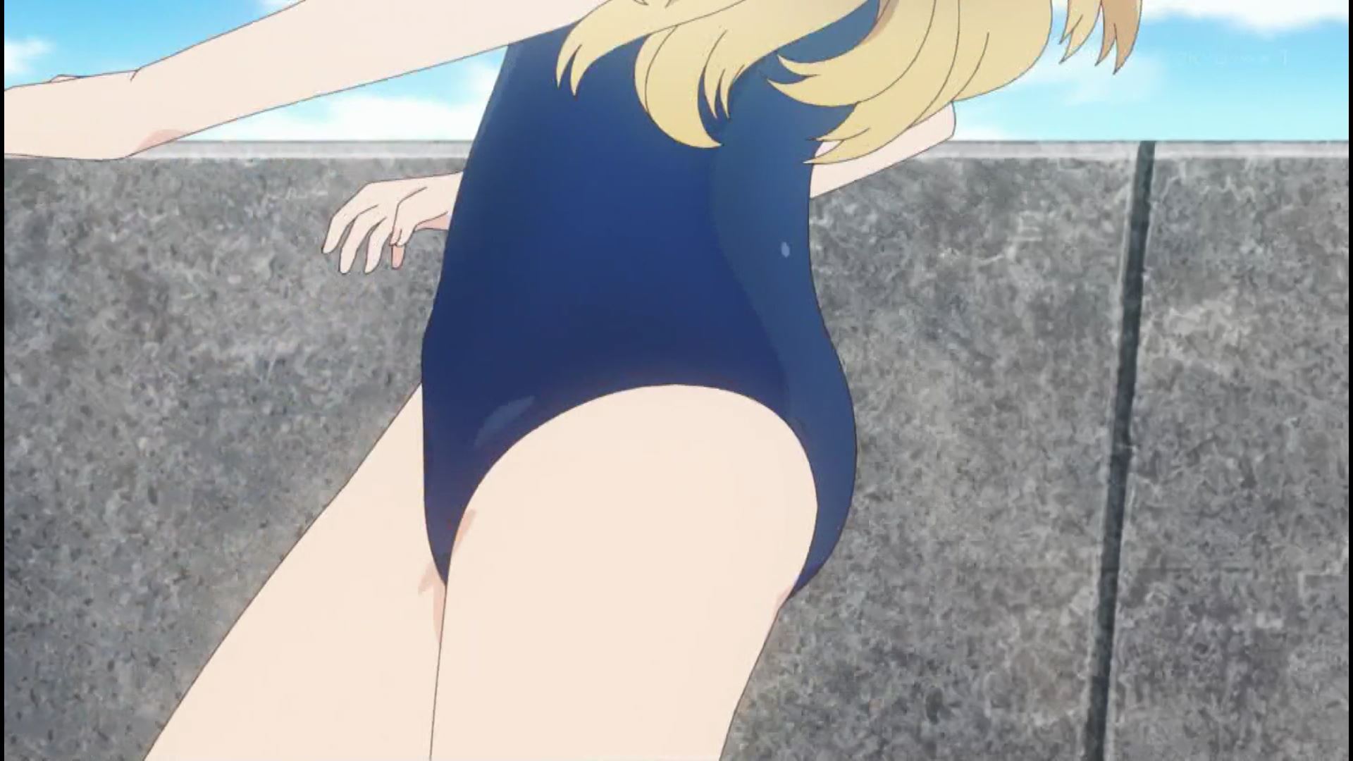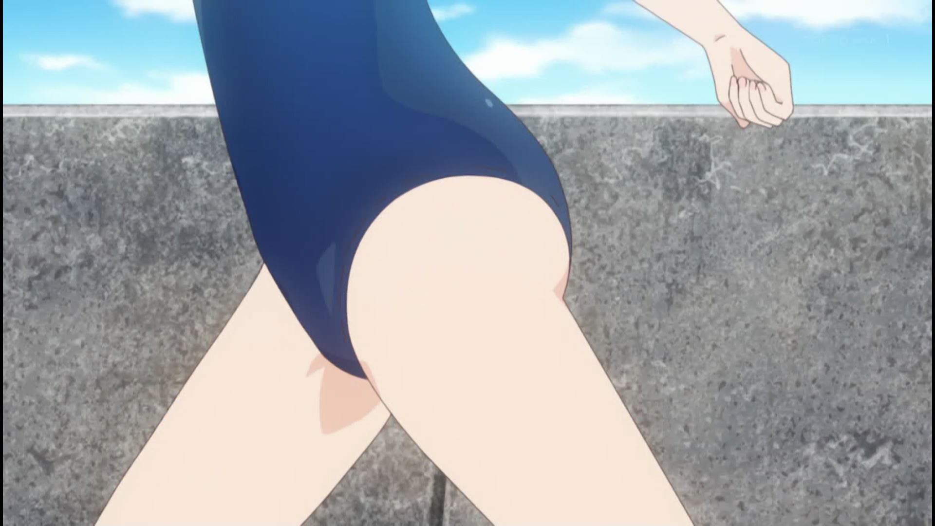 アニメ『スローループ』1話でエロいムチムチおっぱいの女の子のエロスク水シーン!