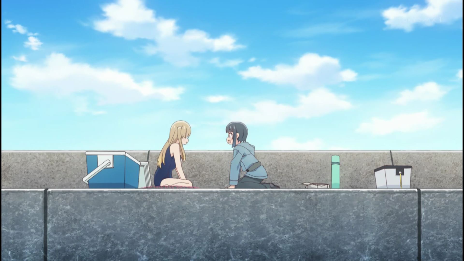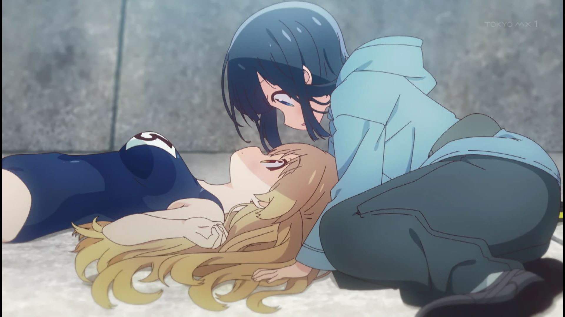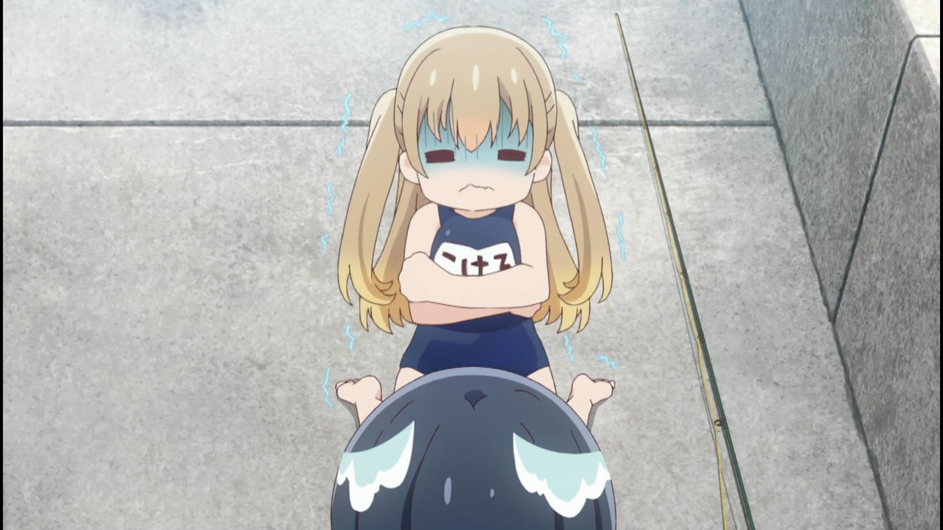 アニメ『スローループ』1話でエロいムチムチおっぱいの女の子のエロスク水シーン!