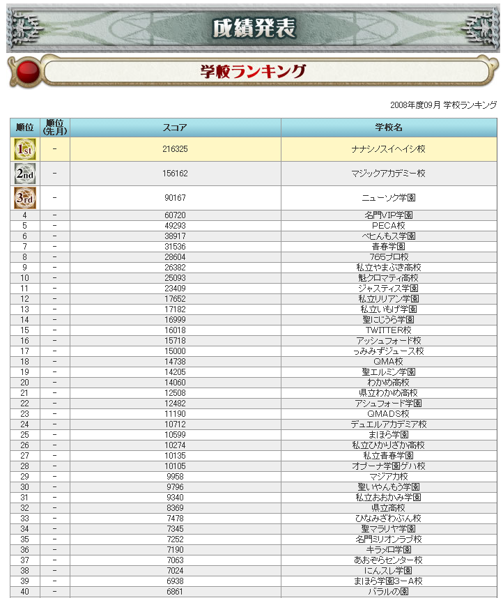 クイズマジックアカデミーDS 学校ランキング
