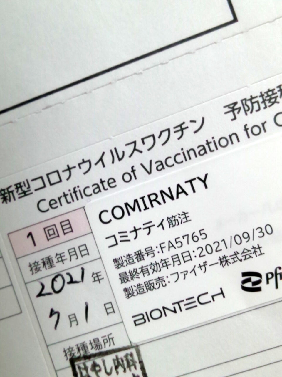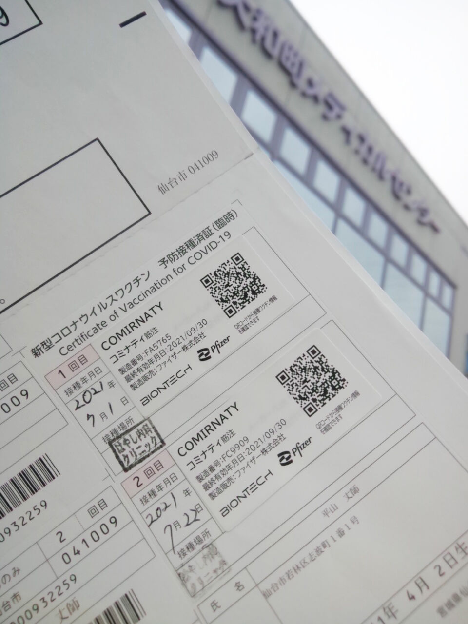 わたくしは基礎疾患持ちなので、かかりつけのご近所「大和町メディカルセンター内 はやし内科」でファイザー製のワクチンを接種して来ました 😁