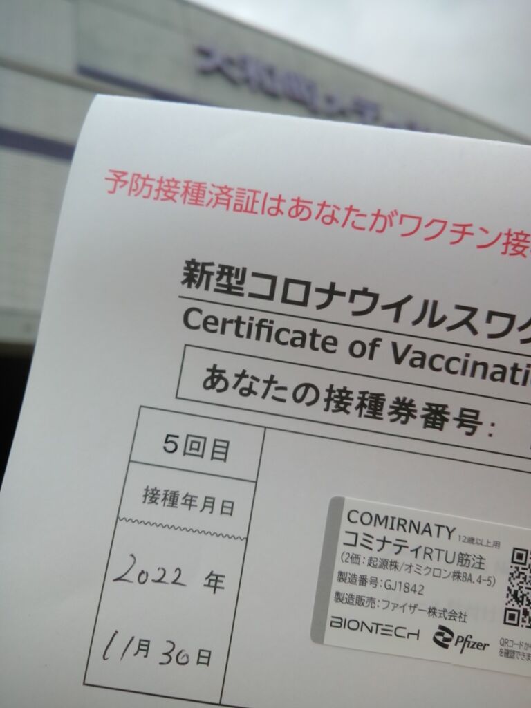 ワタクシは基礎疾患もちだから15時過ぎに6回目のワクチン接種を済ませた。