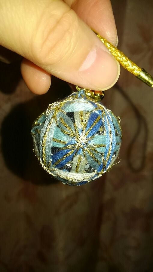 幸い、毬のもとになる物はユザワヤで安くまとめ買い(発泡スチロールのボールが5個でうろ覚えで税抜き100円。)出来たので、同じ模様だが次の課題…と言う事で複数作ったのだ。