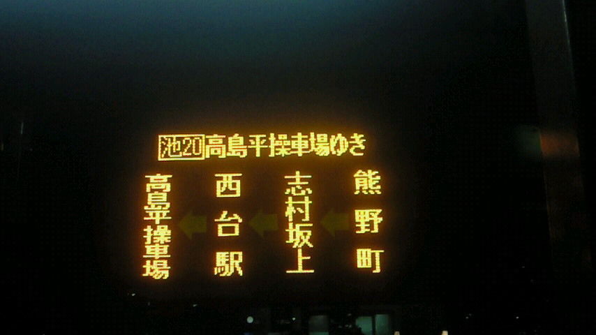 池袋駅から要町駅・西台駅を経由して高島平駅に程近い高島平操車場に向かう路線のLED幕です。