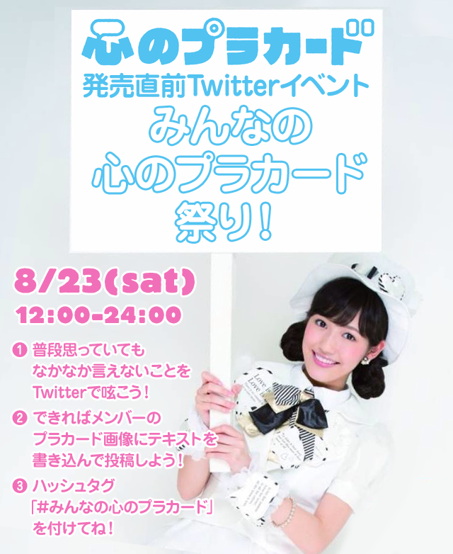 8月27日(水)に発売される「心のプラカード」の発売記念としてTwitterイベント「みんなの心のプラカード」祭りを開催します!プラカードの画像に普段思っていてもなかなか言えないことを書き込んでアップしよう!もちろんテキストだけでもOK。