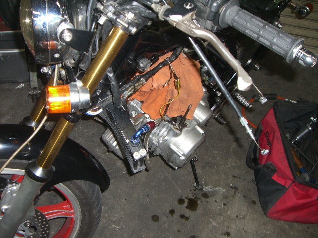 何とか無事に帰ってきました。エンジンが冷えるのを待ってすぐさまバラシ開始!走行は往復で590kmでした。