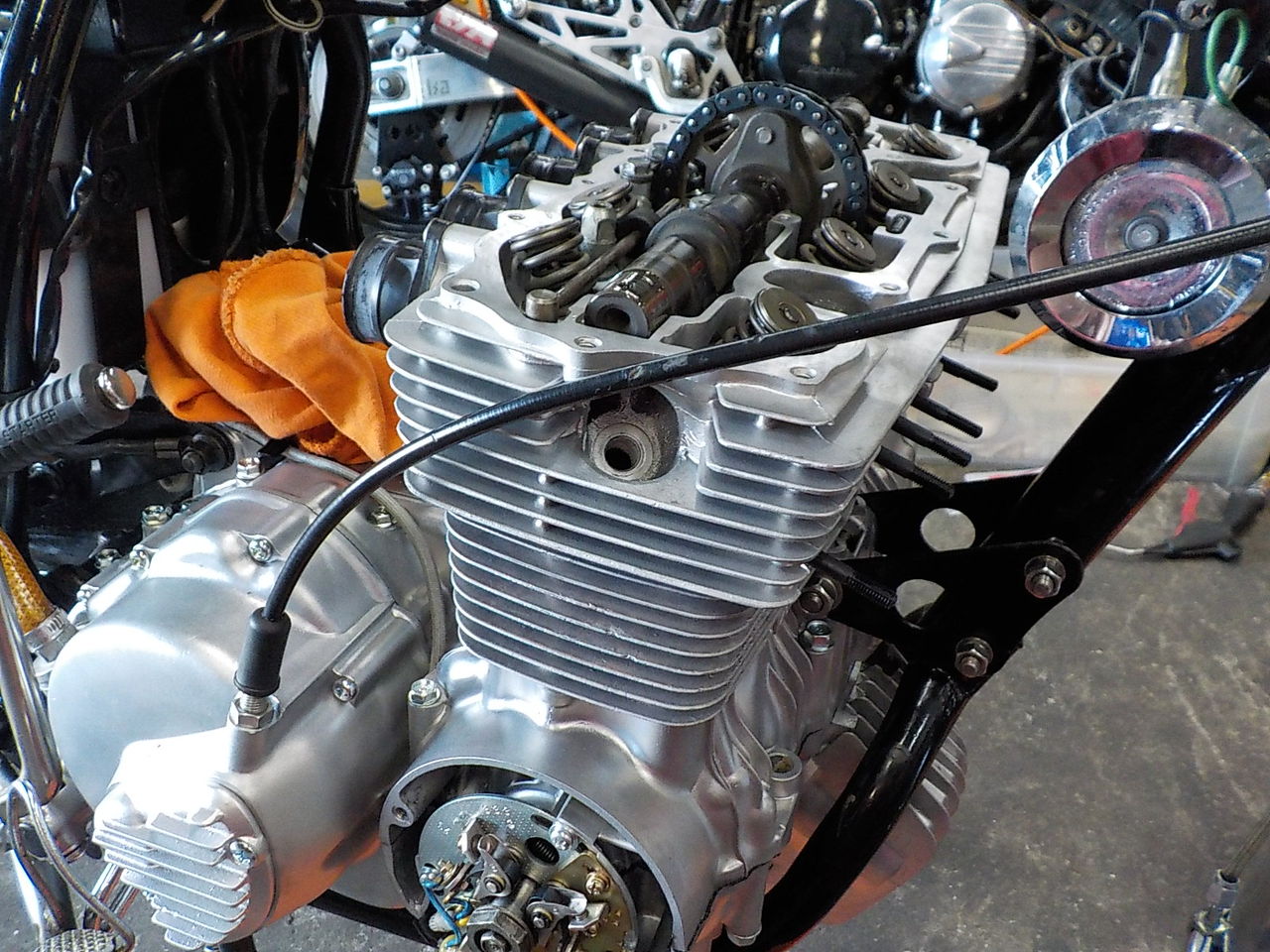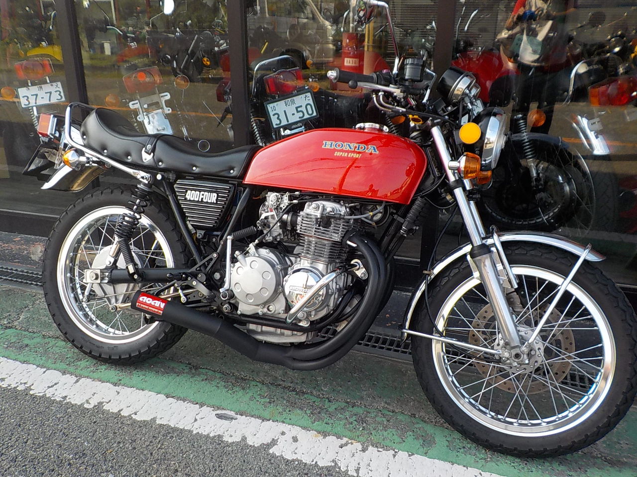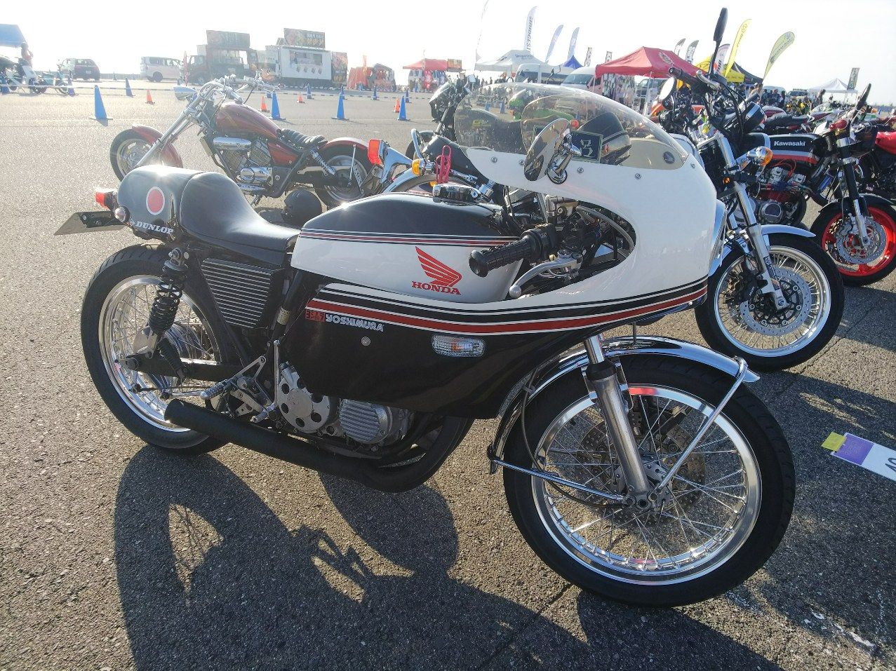 設営完了してからカスタムバイクコンテストの車両を見て回っていました。最近、沢山のパーツを購入して頂いた愛知県のお客様です。このCB、お話を聞くと当社のユーザーさんが乗っていた車両が回り回って現オーナーさんの所に来たみたいです。こちらの車両は上記のお友達です。個人的に気になったのはKR500レプリカ中身はガンマですがこちらはコンテストで優勝したC125です。