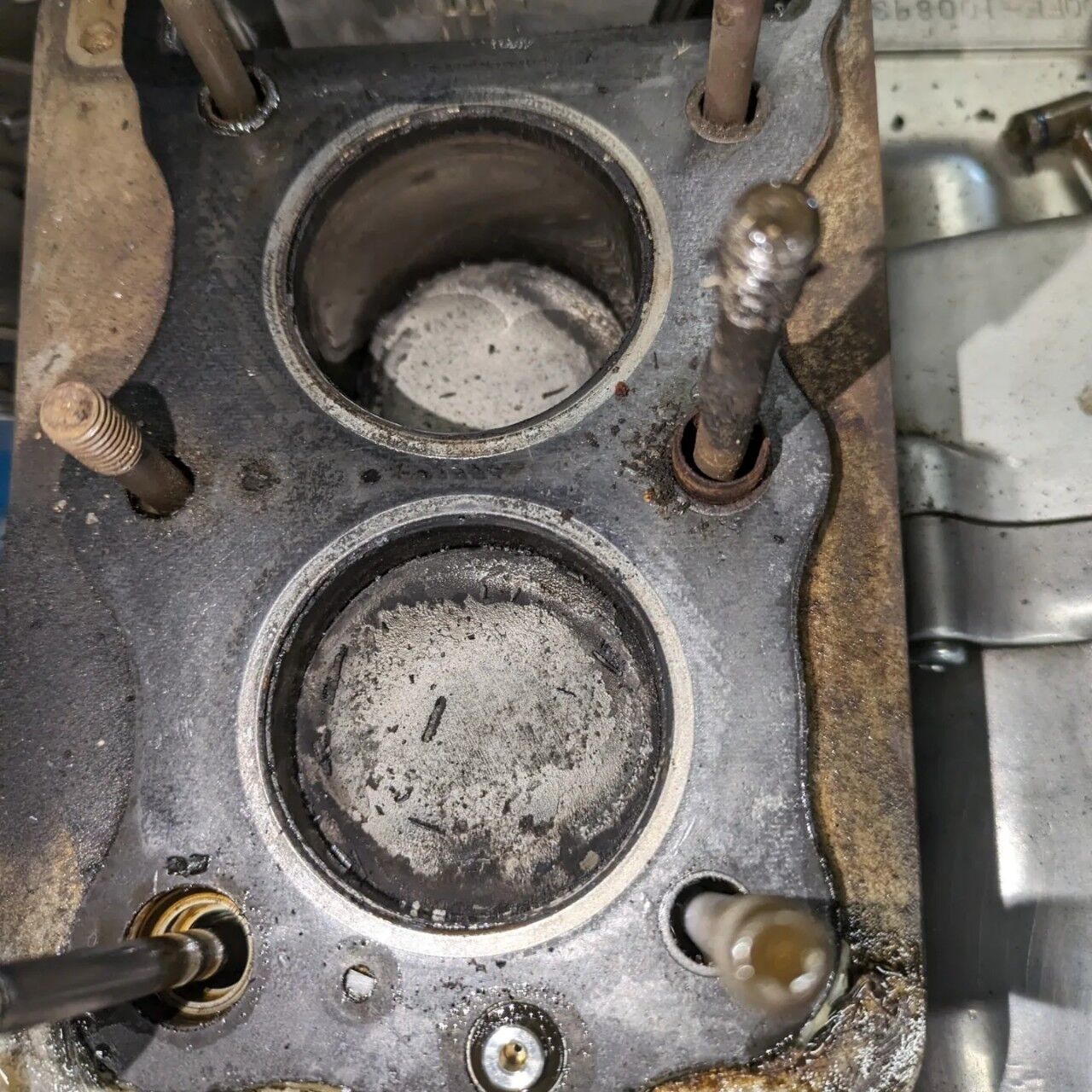 定番のヘットとシリンダーの間からのオイル漏れです。