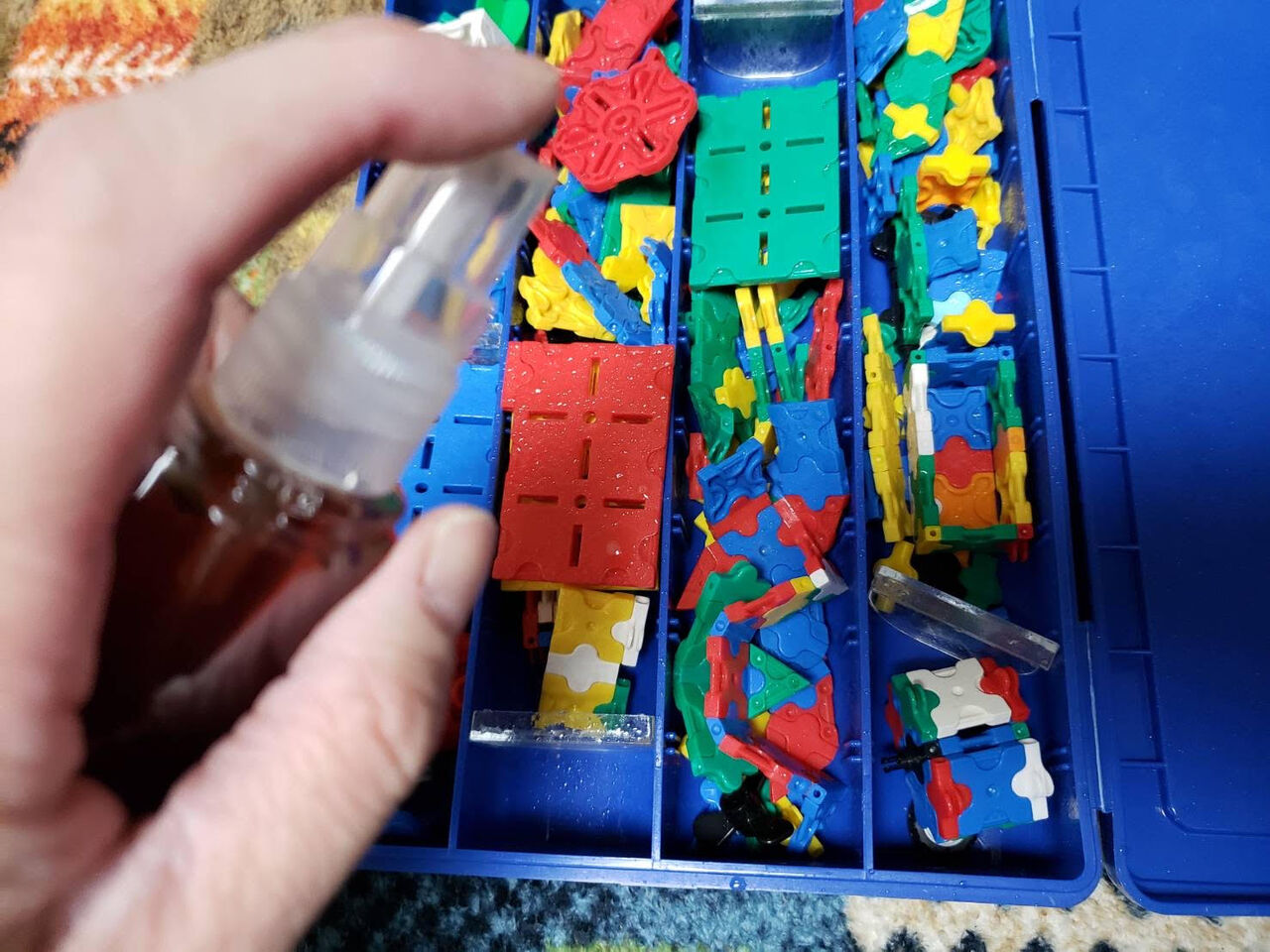 おもちゃや遊び道具、食卓や皆さんが触れる物、スマホや電話器、手すり、など防御の為にスプレーしておきましょう。