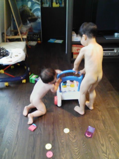 絢は一昨日、つかまり立ちをしました。弟は勝手に育ってくれてなんて思ってましたが、こちらも最近、後追いが激しくなってきました。
