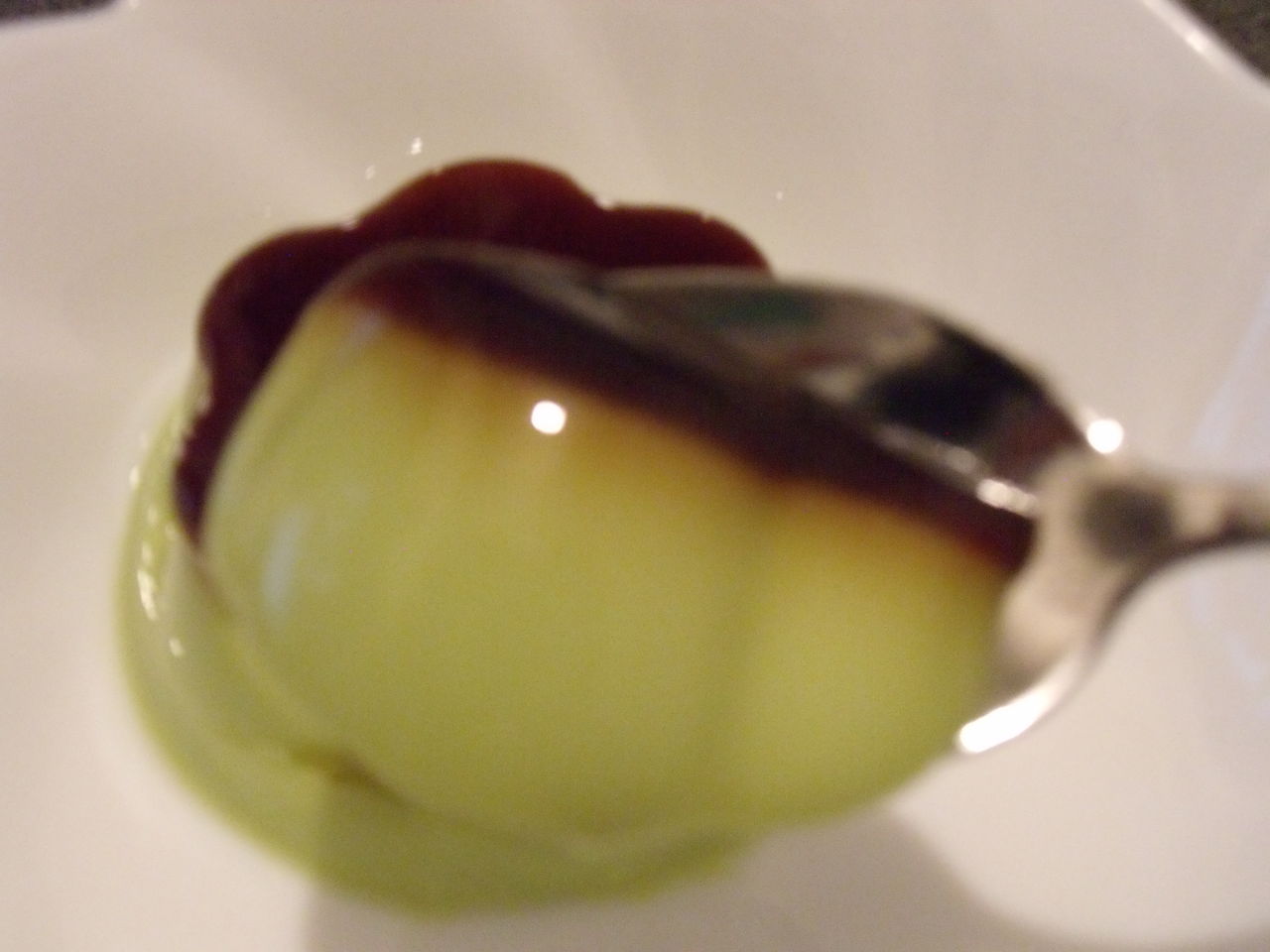 カラメルソースの濃厚な甘さとちょっぴり香ばしいお味が、まろやかなお味の抹茶プリンのアクセントになっていて、さらにおいしい~😋!