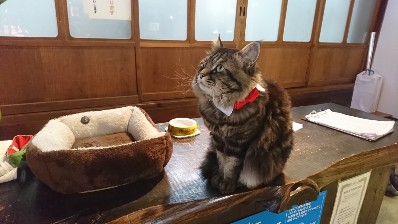 中へ入ると、番頭(専務)である看板猫のニャアがお出迎え。