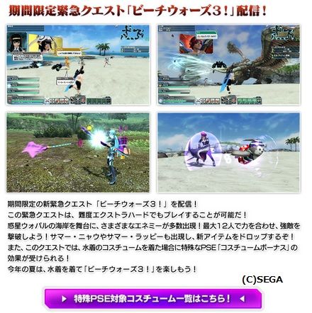 ビーチウォーズ3で特殊なPSE「コスチュームボーナス」の効果が受けられるコスチューム一覧が公開されてました。