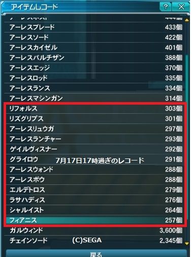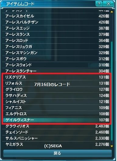昨日ようやくレコードに載ったガル・グリフォンの星13武器ですが、やはり1日分のドロップ数だったようですね。