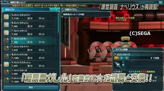 報酬は極原晶ガレルで新星13のネメシスシリーズと交換できます。