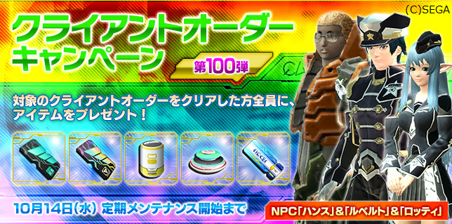 あと今回はクライアントオーダー第100回ということでいつもより報酬が豪華になっているので欲しい人はお忘れなく。