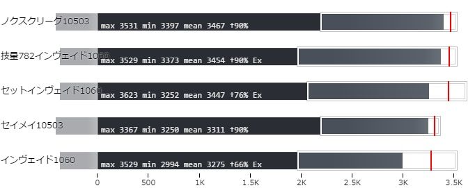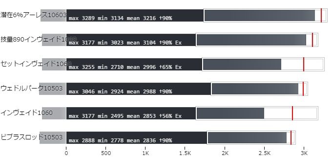 あとどうしても法撃インヴェイドを使ってはいけませんということではなく、技量を盛らないとこれぐらいぶれるということを分かった上で使ってほしいというだけのことです。