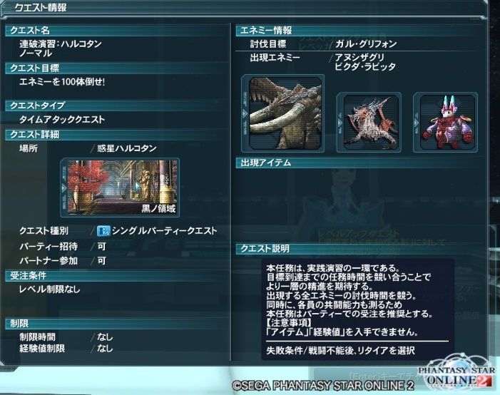 放送局でも説明がありましたが、経験値やドロップは一切ありません。強いて言うならSHのリザルトで2700メセタもらえるぐらいです。