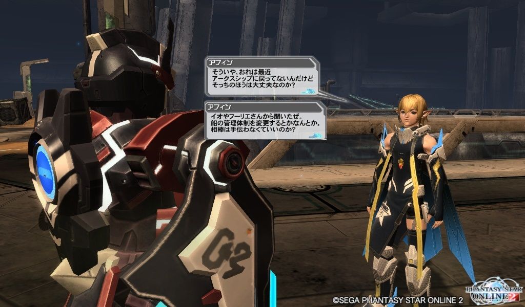 そして場面は地下坑道に変わるのですが、アフィンは最近アークスシップに戻ってないとのこと。