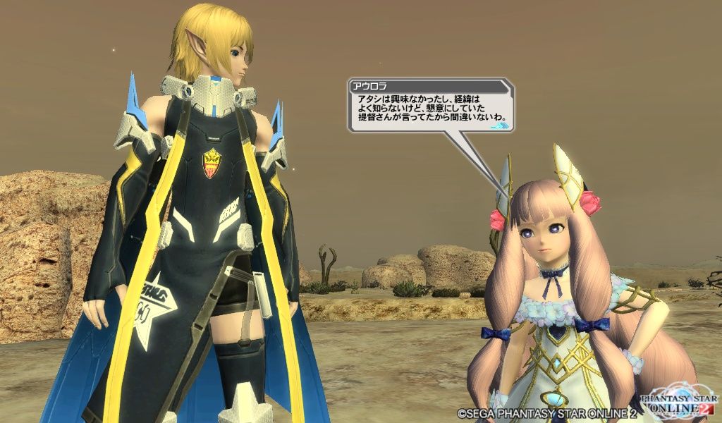ただ単に、他の作品で宇宙でも提督って単語が出てきたからpso2でも使える!ってことにはならないと思うんですよ、そもそも世界観が違うから。pso2では一つの世界観を作り上げよう!って努力が感じられなくて、追加される設定や単語に統一性が感じられないんですよね。