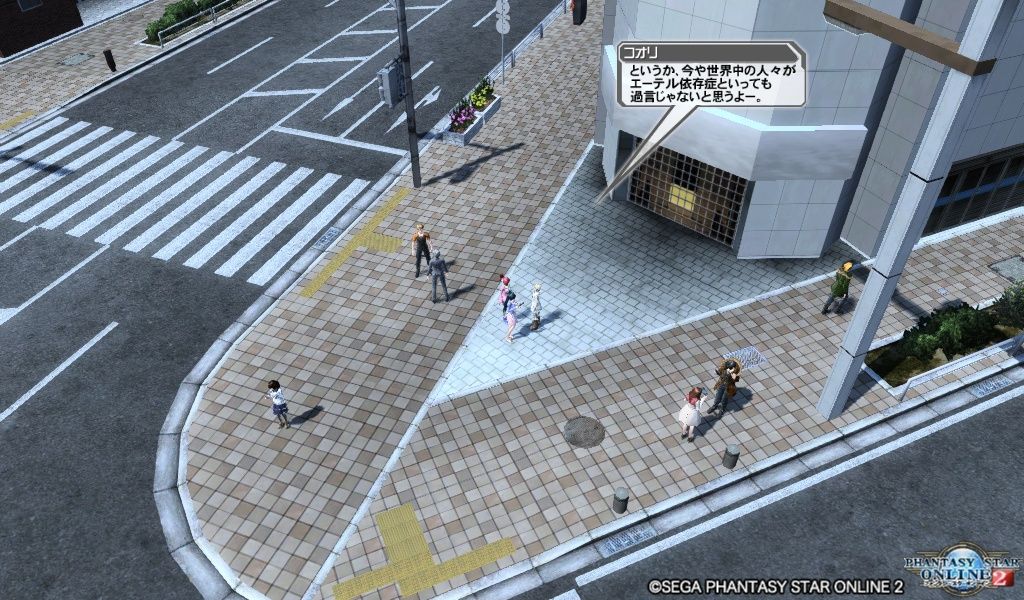 同じNPCが同じ場所を何度も云々はいつもの運営だなと思いましたが、コオリがエーテル依存症だと説明しだした瞬間に、喋っていたカップルや道を歩いている人とか皆が一斉に立ち止まってあの端末操作しだした状況はゾッとした。それとコオリのあのレズっ気ありの発言もどうにかならないのかと自分も思いました。